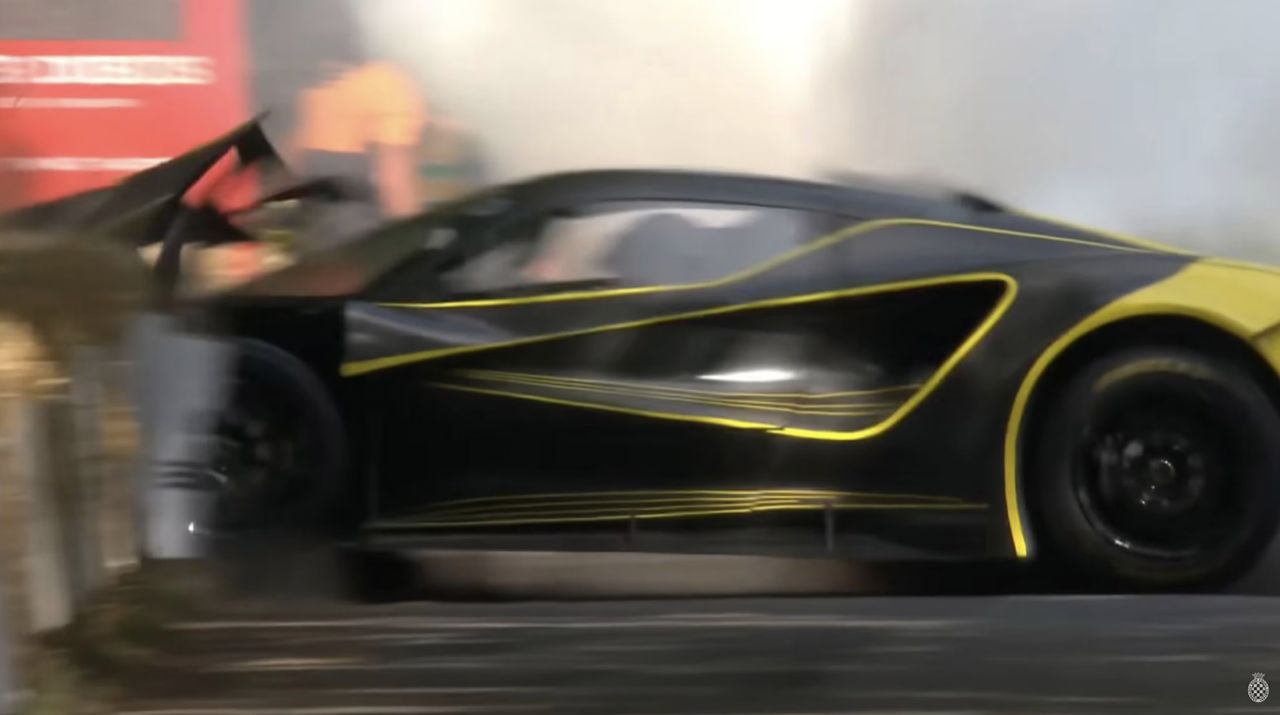 Lotus Evija X พัฒนามาจาก Lotus Evija เป็นรถสปอร์ตพลังงานไฟฟ้าที่ติดตั้งมอเตอร์ทั้งหมด 4 ตัว ให้กำลังสูงถึง 2,011 แรงม้า กับแรงบิด 1,704 นิวตันเมตร และทำความเร็วสูงสุดถึง 350 กิโลเมตรต่อชั่วโมง ไม่ใช่เรื่องแปลกที่จะเห็นรถยนต์ที่มีแรงม้าสูงชนเข้ากับกองหญ้าแห้งในสนาม Goodwood แต่อุบัติเหตุที่เกิดขึ้นกับ Lotus Evija X นับเป็นเรื่องประหลาดอย่างแท้จริง เพราะการชนไม่ได้เกิดขึ้นที่มุมของโค้ง Molecomb ซึ่งเป็นทางโค้งซ้ายบริเวณกลางสนาม ที่ขึ้นชื่อลือชาในเรื่องของอุบัติเหตุจากรถที่พยายามจะทำเวลาต่อรอบของสนามแห่งนี้ให้กลายเป็นสถิติใหม่ จากคลิปวิดีโอ Lotus Evija X ออกสตาร์ตอย่างรวดเร็วด้วยแรงบิดมหาศาลของมอเตอร์ขับเคลื่อนทั้งสี่ตัว คุณจะเห็นควันจากยางที่เสียดสีกับผิวแทรคจนเกิดความร้อน และทำให้มีควันจำนวนมากเกิดขึ้นบริเวณท้ายรถ
