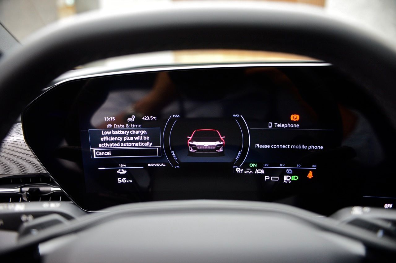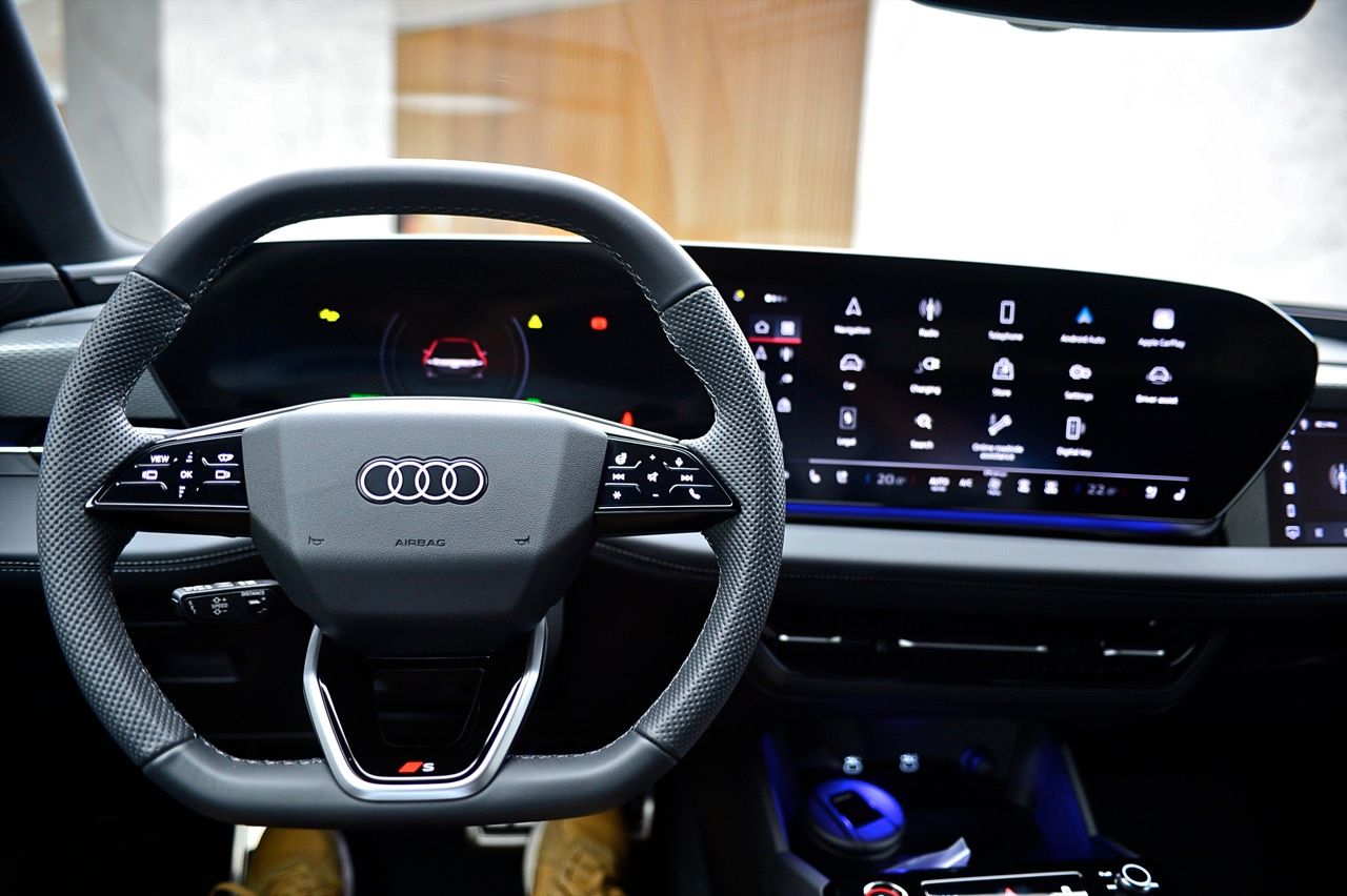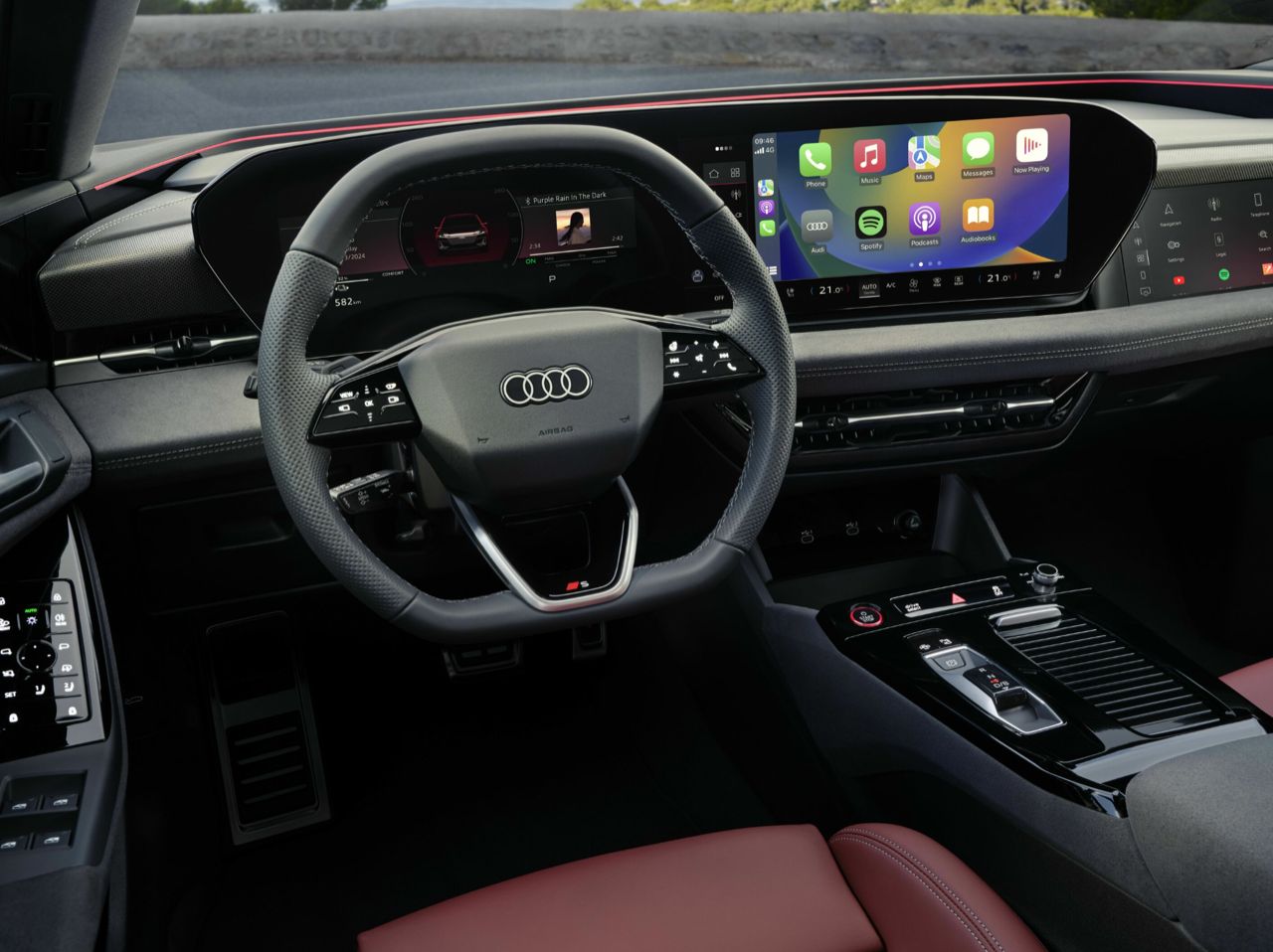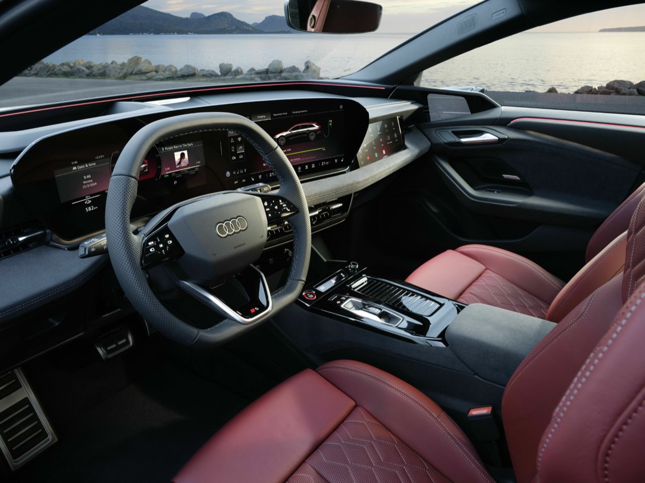 ไฟท้าย OLED สามารถใช้แสดงข้อความเตือนไปยังผู้ที่ชอบตามจี้ท้ายรถ โลโก้ของ Audi สว่างขึ้นที่ด้านหลัง หลังคาพาโนรามิกโปร่งใสที่ปรับเปลี่ยนค่าการกรองแสงได้ อันนี้ถือว่าเจ๋งดีทีเดียว แผงคล้ายแผ่นไม้ระแนงเก้าแผงที่ประกอบกันเป็นหลังคาแบบโปร่งแสงช่วยทำให้ลูกค้าที่โหยหากระจกหลังคารู้สึกพึงพอใจ Audi ยังใช้ชิ้นส่วนชุดเดียวกันในการผลิต SUV (Q6 e-tron) ซึ่งถือเป็นวิธีที่ดีในการป้องกันความเสี่ยง แพลตฟอร์ม PPE ยังถูกนำไปใช้ใน Porsche New Macan EV อีกตะหาก