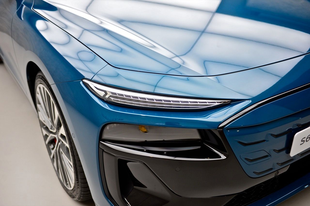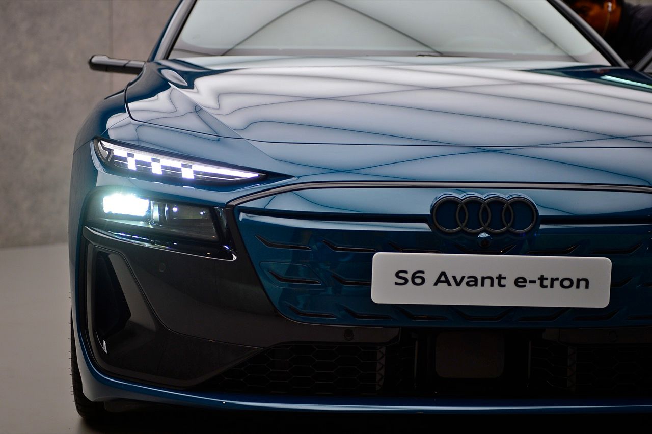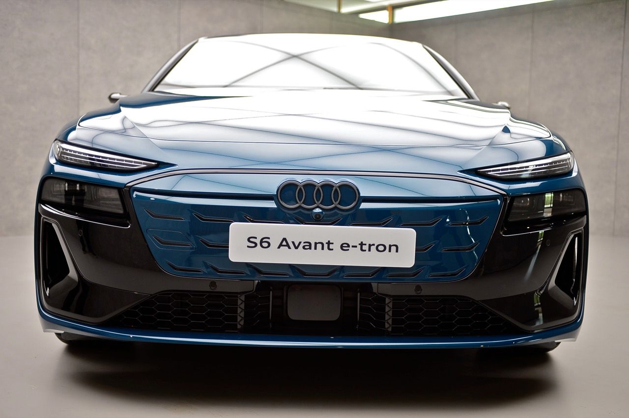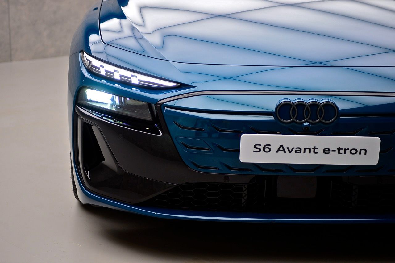 ก่อนจะถูกดันขึ้นสู่ไลน์ผลิตในยุโรป การออกแบบในขั้นสุดท้ายของ S6 e-tron นั้นค่อนข้างจะคล้ายกับรถต้นแบบที่เปิดตัวเมื่อปี 2022 ตรงที่มีหลักอากาศพลศาสตร์ต่ำสุดๆเหมือนกัน กระจังหน้าสีเดียวกับตัวรถ พร้อมลวดลายเล็กๆ ล้อมรอบด้วยสิ่งที่ Audi เรียกว่า หน้ากากสีดำ ซึ่งออกแบบมาเพื่อซ่อนไฟหน้าทรงเรียวบางที่โคตรจะทันสมัย อันที่จริง ไฟของ Audi ยุคใหม่นั้นล้ำไปไกลมากจนแบรนด์อื่นตามไม่ทัน S6 ยังติดตั้งเซ็นเซอร์ด้านหน้า และช่องรับลมสำหรับ "ม่านอากาศ" ที่ควบคุมการไหลของอากาศรอบตัวรถในลักษณะที่มีประสิทธิภาพสูงสุด โดยเฉพาะตอนขับเร็วจี๋ แอร์โรไดนามิกส์ที่ยอดเยี่ยมบวกระบบขับเคลื่อนสี่ล้อ ทำให้รถเกิดความเสถียรสูงสุด