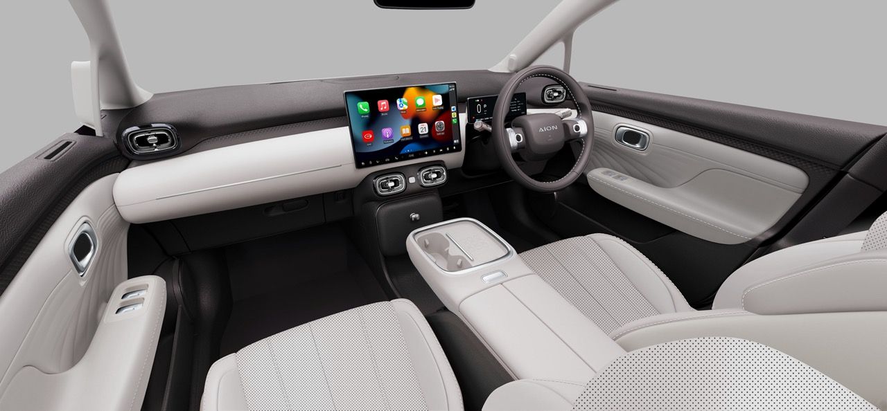 ห้องโดยสารของ AION UT มี พื้นที่ด้านหลัง 1,385 มม. พื้นที่วางขา 905 มม. ตอบโจทย์การเดินทางแบบครอบครัว หรือการใช้งานที่ต้องการพื้นที่ เบาะที่นั่งปรับพับได้เต็มที่ เพิ่มความยืดหยุ่นให้ใช้งานได้หลากหลาย เบาะ Butterfly-shaped Seat วัสดุระดับพรีเมียม ระบบ L2 Intelligent Driving เสริมความปลอดภัยด้วย RCTB พร้อม Voice Control รองรับการสั่งงานด้วยเสียงทั้งภาษาไทยและอังกฤษ ครอบคลุมทั้งที่นั่งด้านหน้าและด้านหลัง