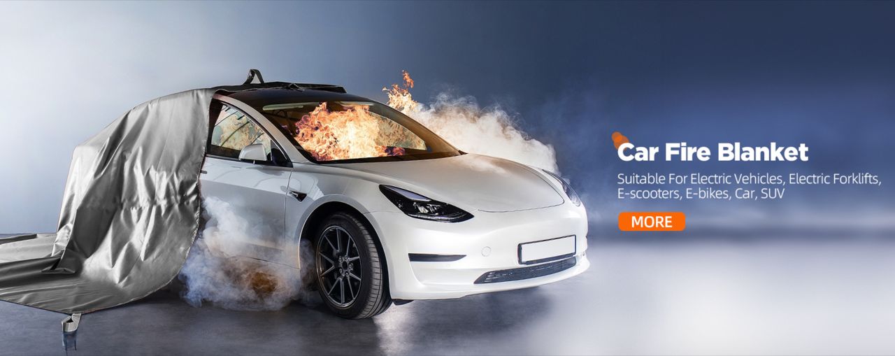 ปัจจุบัน มีนวัตกรรมที่ช่วยในการรับมือกับเหตุการณ์ลักษณะนี้ คือ ผ้าห่มกันไฟสำหรับรถยนต์ไฟฟ้า หรือ EV Fire Blanket ซึ่งออกแบบมาเพื่อควบคุมและจำกัดการลุกไหม้ ลดการเข้าถึงของออกซิเจน ควบคุมเปลวไฟ ควัน และไอพิษ รวมถึงป้องกันการลุกลามของไฟไปยังรถคันอื่นหรือสิ่งปลูกสร้างใกล้เคียง โดยต้องเข้าหารถด้วยความระมัดระวัง คลี่ผ้าห่มแล้วคลุมรถให้มิดชิดทั้งคัน ปล่อยทิ้งไว้เป็นเวลาหลายชั่วโมงเพื่อลดความเสี่ยงของการลุกไหม้ซ้ำ อย่างไรก็ตาม ผ้าห่มชนิดนี้ไม่สามารถดับการลุกไหม้จากการลัดวงจรของแบตเตอรี่ลิเธียมไอออนได้โดยตรง แต่ช่วยควบคุมสถานการณ์ให้ดีขึ้น