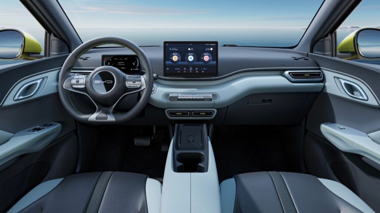 ภายในของแฮทช์แบคไฟฟ้าคันเล็ก คล้ายกับ Dolphin และ Seal พวงมาลัยเป็นแบบสามก้าน ด้านล่างแบบฐานตัด แผงหน้าปัดเป็นจอแสดงผลแบบตั้งอิสระขนาดกะทัดรัด ช่องแอร์ของระบบปรับอากาศแบบวงกลมสองช่อง ตรงกลางแดชบอร์ด โดยช่องหนึ่งอยู่ที่แต่ละด้านของจอภาพมอนิเตอร์ของระบบอินโฟเทนเมนต์สั่งงานด้วยระบบสัมผัส ระบบอินโฟเทนเมนต์ คล้ายกับของ Dolphin จอภาพขนาด 12.8 นิ้ว แผงควบคุมรูปทรงกระบอก (รวมถึงคันเกียร์) โดยพื้นฐานแล้ว BYD ได้นำแดชบอร์ด คอนโซลกลาง และองค์ประกอบอื่นๆ ของรถยนต์ไฟฟ้ารุ่น Dolphin มาปรับใช้ตามขนาดที่เล็กกว่าของ Seagull