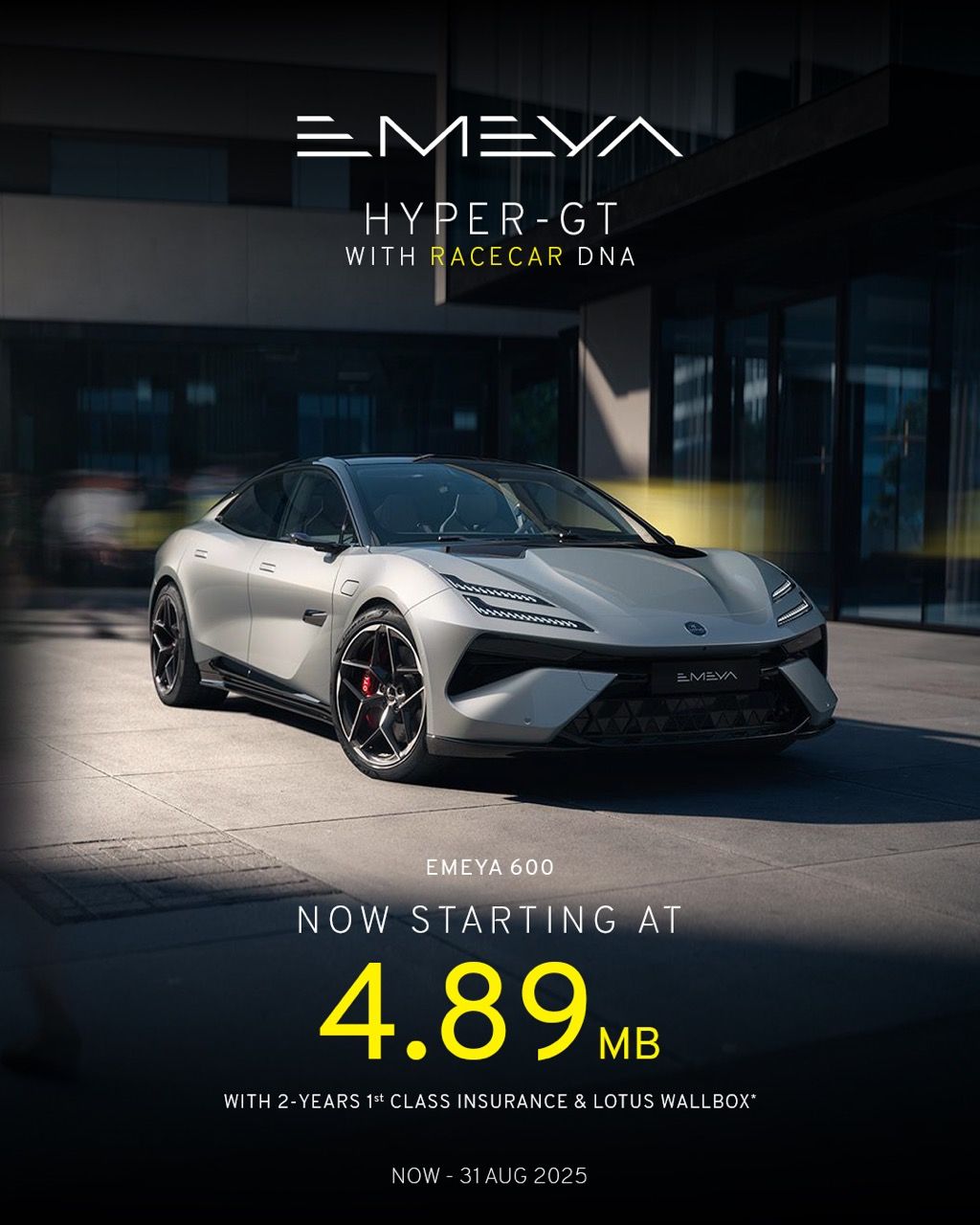 Lotus Car Thailand ภายใต้คอนเซ็ปต์ใหม่ “Lotus for Everyone - ใครๆ ก็สามารถเป็นเจ้าของโลตัสได้แล้ววันนี้” เพื่อตอบโจทย์ความต้องการในตลาดปัจจุบันมากยิ่งขึ้น อย่าง Emeya 600 ในราคาเริ่มต้นที่ 4.89 ล้านบาท* พร้อมรับประกันภัยชั้นหนึ่งนาน 2 ปี และ Lotus Wall Box* และรุ่น Eletre 600 ราคาเริ่มต้นที่ 5.29 ล้านบาท* เลือกรับ ประกันภัยชั้นหนึ่ง นาน 1 ปี หรือ Lotus Wall Box* แคมเปญ เริ่มตั้งแต่วันที่ 1 – 31 ส.ค. 2568 นี้ สนใจสอบถามข้อมูลเพิ่มเติม ได้ที่ โลตัส คาร์ ประเทศไทย โทร. 066 137 3330 หรือติดต่อทาง Line Official: @LotusCarsTH