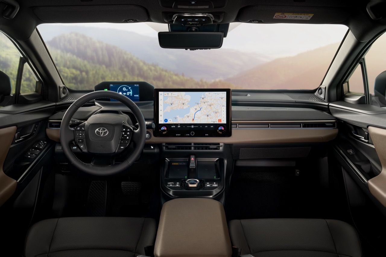 ห้องโดยสารของ bZ4X รุ่นใหม่ ออกแบบคอนโซลกลางใหม่ที่ใช้งานง่ายขึ้น อุปกรณ์ดิจิทัล แผงหน้าปัดพร้อมหน้าจอมัลติมีเดียขนาด 14 นิ้ว เบาะโทนสี City Moss แบบใหม่ ระบบมัลติมีเดียมีฟังก์ชันนำทาง สามารถเลือกเส้นทางและจุดชาร์จได้ตามสถานะการชาร์จแบตเตอรี่และระยะทางที่เหลือของรถ