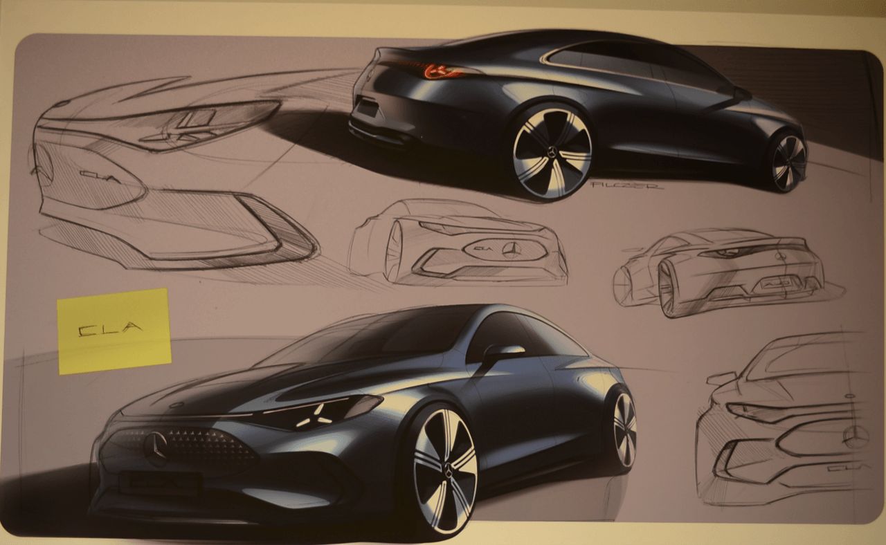 Dennis Brings Senior Designer Mercedes-Benz กล่าวว่า การพัฒนา CLA และแพลตฟอร์มไฟฟ้าที่สามารถใช้ร่วมกับ CLA ปลั๊กอินไฮบริด เริ่มต้นขึ้นเมื่อประมาณสามปีที่แล้ว จุดเริ่มต้นคือการสร้างรถซีดานไฟฟ้าที่สมบูรณ์แบบ พร้อมหลังคาลาดโค้งลงไปยังส่วนท้าย สไตล์คูเป้ การออกแบบที่ปรับให้รูปทรงที่ลู่ลมของรถไม่ส่งผลกระทบพื้นที่ภายในห้องโดยสารด้านหลัง แม้ว่า CLA จะได้รับการออกแบบให้เป็นรถยนต์ไฟฟ้า แต่แพลตฟอร์ม MMA สามารถรองรับเครื่องยนต์สันดาปภายในด้วยเช่นกัน สถาปัตยกรรมระบบขับเคลื่อนล้อหน้า (FWD) มอบระบบขับเคลื่อนปลั๊กอินไฮบริด ขับเคลื่อนล้อหน้า หรือระบบขับเคลื่อนสี่ล้อ 4MATIC รวมถึงระบบขับเคลื่อนล้อหลังใน CLA 250+ EV เนื่องจากออกแบบใหม่ให้มอเตอร์ขับเคลื่อนวางคล่อมอยู่ที่เพลาหลัง
