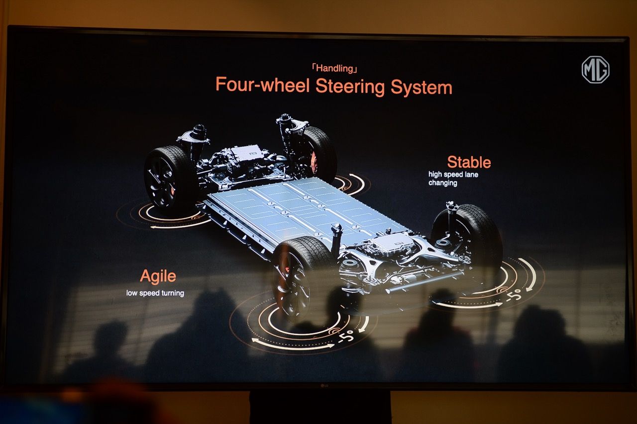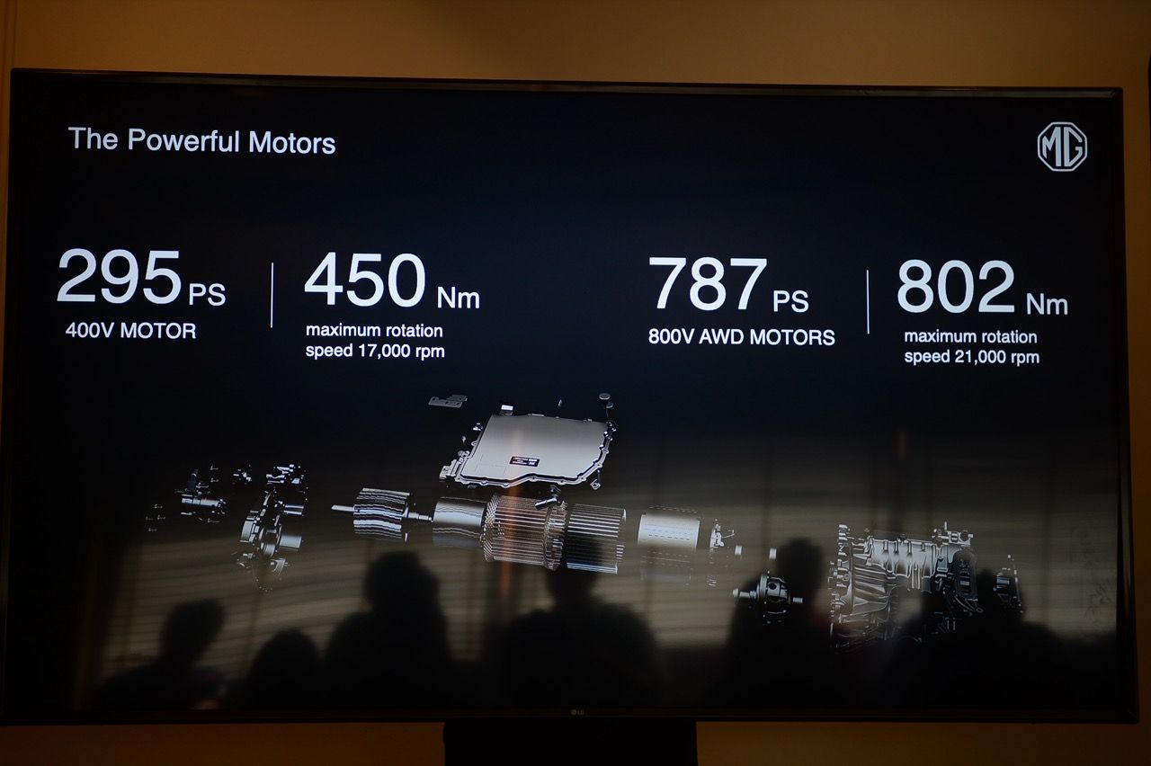 SAIC MOTOR CORPORATION ซึ่งเป็นบริษัทแม่ของ MG ในการพัฒนายานยนต์ไฟฟ้าพรีเมียม พร้อมฟีเจอร์ เช่น ระบบอัจฉริยะแสดงผลในที่มืดและฝนตก (Intelligent Rainy Night Mode) ระบบ One touch iAD (Auto park Assist) ระบบช่วงล่างถุงลม (Intelligent Air Suspension)