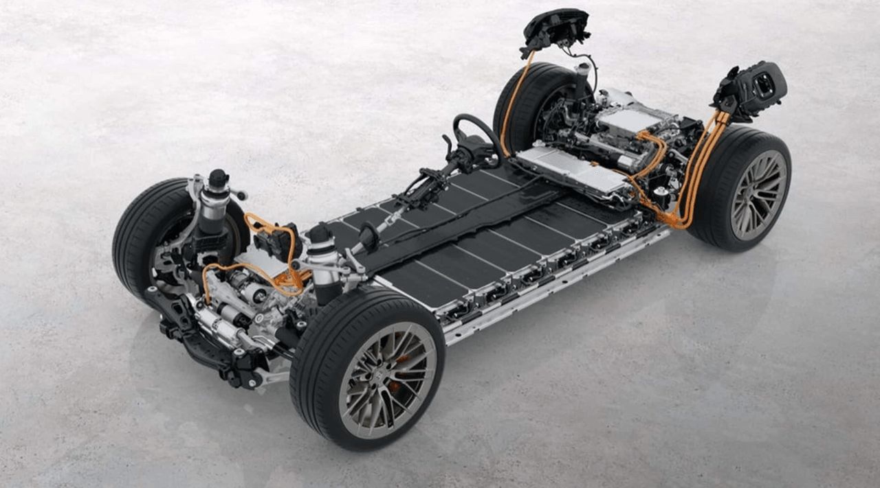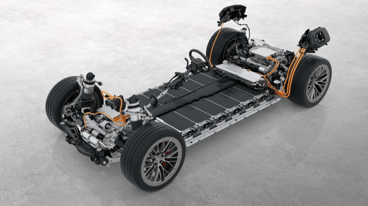วิศวกรของ Porsche ทำทุกวิถีทางเพื่อเพิ่มประสิทธิภาพให้กับระบบขับเคลื่อนพลังงานสะอาด สิ่งสำคัญก็คือ ชุดแบตเตอรี่มีการเลิกใช้โครงยึดแบบเดิม โดยเปลี่ยนเป็นโมดูลแบตฯ จำนวน 6 โมดูล แต่ละโมดูล บรรจุเซลล์แบบซอง 32 เซลล์ ยึดเข้ากับโครงรถแทน เป็นขั้นตอนที่ช่วยลดน้ำหนักและเพิ่มความหนาแน่นของพลังงานไฟฟ้า เนื่องจากไม่มีโครงแบตเตอรี่แยกต่างหาก นอกจากนี้ยังย้ายพัดลมระบายความร้อนไปไว้ด้านหน้า แทนที่จะอยู่ด้านหลังหม้อน้ำ เพื่อทำให้การระบายอุณหภูมิของระบบขับเคลื่อนมีประสิทธิภาพมากยิ่งขึ้น