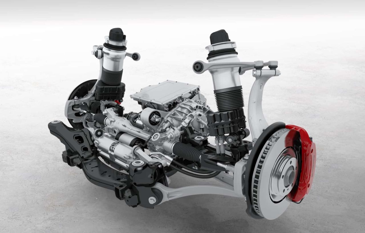เมื่อเทียบกับ Taycan และ Panamera แล้ว Cayenne EV ใช้โช้คอัพถุงลมขนาดใหญ่ขึ้น เพื่อสมรรถนะการขับขี่แบบออฟโรด มีการปรับแต่งซอฟต์แวร์บางส่วนเพื่อรองรับการทำงานให้กว้างและครอบคลุมมากกว่าเดิม new Cayenne Electric มาพร้อมระบบช่วงล่างถุงลมแบบกึ่งแอคทีฟ ปรับระดับความสูงได้ พร้อมระบบ Porsche Active Suspension Management (PASM) เป็นอุปกรณ์มาตรฐาน