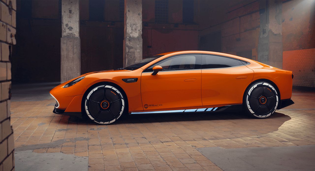 GT XX ใช้เฉดสีของยานยนต์ต้นแบบแนวคิด Vision AMG ที่เปิดตัวในปี 2022 โดยมีการผสมผสานเทคนิคใหม่ๆของ Vision One-Eleven ที่เปิดตัวในปี 2023 ตัวถังของ GT XX ยังเชื่อมโยงกับความคลาสสิกของรถต้นแบบ Mercedes C111 ที่งดงาม ซึ่งคลอดออกมาในช่วงปลายทศวรรษ 1960 สีส้ม Sunset Beam แผงข้างประตูเรืองแสง กระจกหน้าออกแบบใหม่ ทำให้เสาหน้าหรือเสา A มีองศาลาดเอียงสุดๆ ส่งผลดีเลิศต่อระบบอากาศพลศาสตร์ตามค่าที่กำหนด แน่นอนว่า GT XX นั้น ผสมความหรูหราไฮเทคของยานยนต์ต้นแบบแนวคิดได้อย่างลงตัว แต่เมื่อขึ้นไลน์ผลิตจริง ก็อาจมีบางจุดที่โดนตัดออกไปเพราะความเว่อร์วังอลังการของรถโชว์ที่อาจทำให้ต้นทุนพุ่งกระฉูด