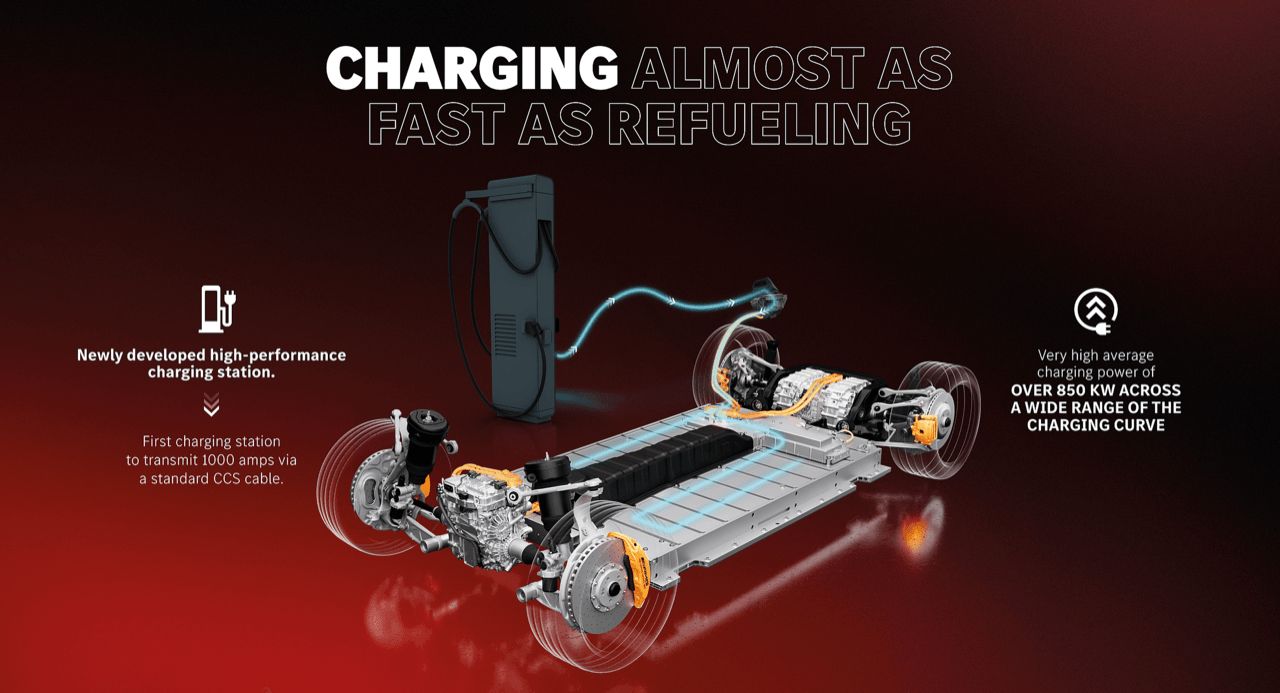 ความเร็วในการชาร์จนั้นสำคัญพอๆ กับความเร็วหรือระยะทางที่ขับ ปัจจุบันยังไม่มีจุดชาร์จที่สามารถส่งอิเล็กตรอนได้ถึง 850 กิโลวัตต์ แต่ Mercedes-AMG มีแผนที่แยบยล โดยร่วมมือกับ Alpitronic ซึ่งเป็นผู้เชี่ยวชาญด้านการชาร์จพลังงานขั้นสูง ทำการ ออกแบบโครงสร้างพื้นฐานสำหรับแท่นชาร์จบ้าพลัง Alpitronic พัฒนาแท่นชาร์จต้นแบบที่สามารถจัดการพลังงานมหาศาลได้โดยใช้สายเคเบิล CCS แบบมาตรฐาน เป้าหมายคือ Alpitronic สร้างแท่นชาร์จที่สามารถชาร์จไฟได้ถึงหนึ่งเมกะวัตต์ นี่อาจเป็นจุดเปลี่ยนสำคัญของวงการรถยนต์ไฟฟ้า