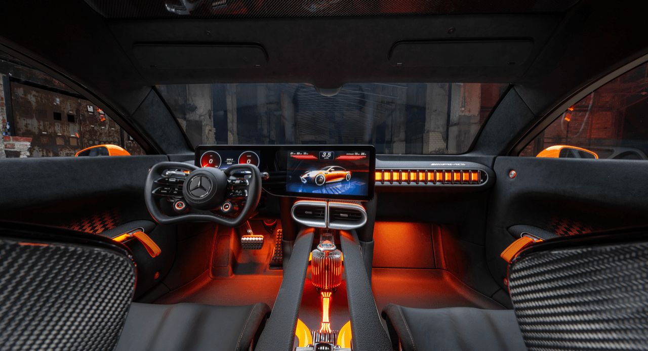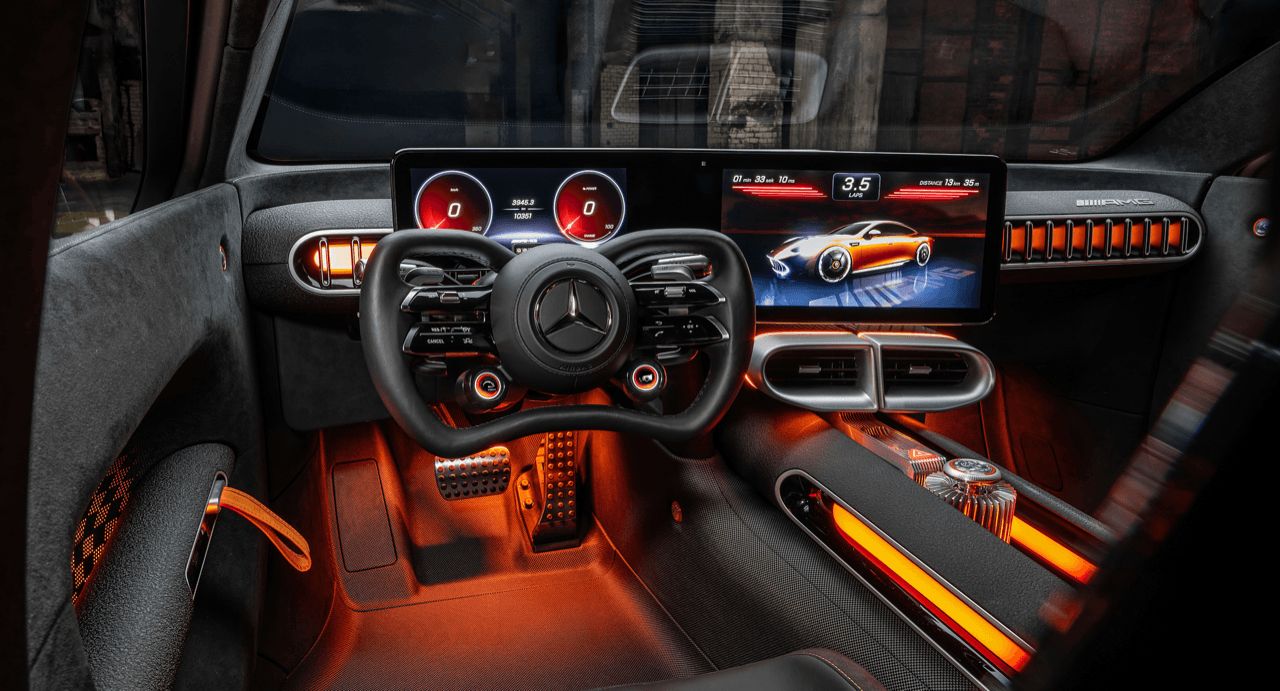 พวงมาลัยของ GT XX คล้ายกับ AMG One เป็นโครงสี่เหลี่ยมที่ตัดให้สั้นลงซึ่งได้รับแรงบันดาลใจจาก Formula One Mercedes ยืนยันว่าพวงมาลัยแบบใหม่พร้อมแล้วสำหรับการผลิต พวงมาลัยแบบ Steer by Wire เชื่อมต่อกับซอฟแวร์อันชาญฉลาดโดยไม่มีความจำเป็นจะต้องเชื่อมกับแกนแรคอีกต่อไป