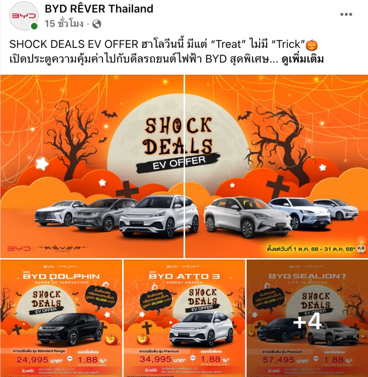 - New BYD DOLPHIN ดาวน์เริ่มต้นเพียง 24,995 บาท หรือรับดอกเบี้ยพิเศษ 1.88%
