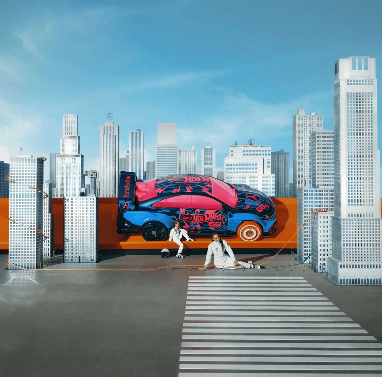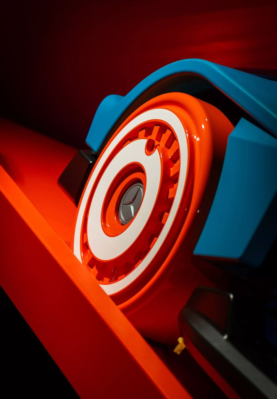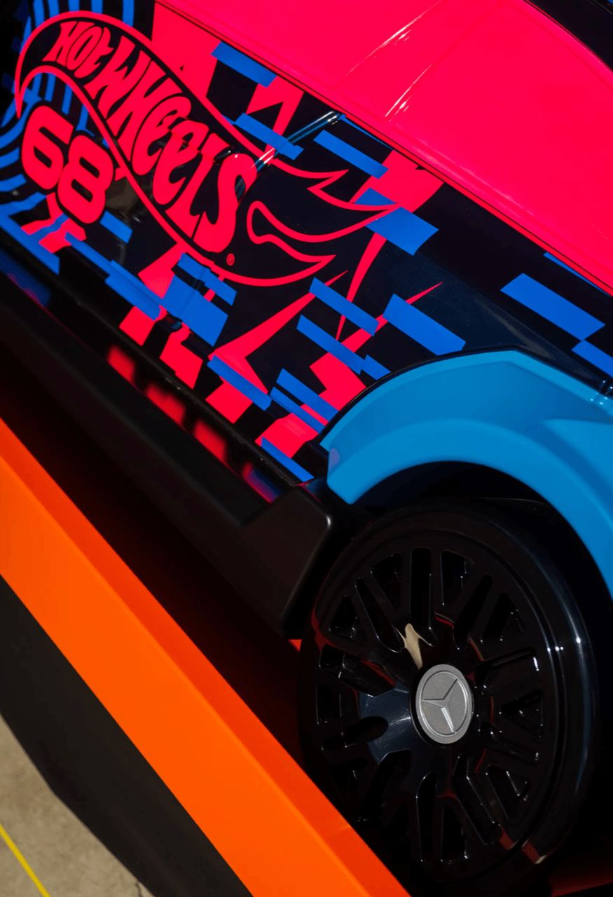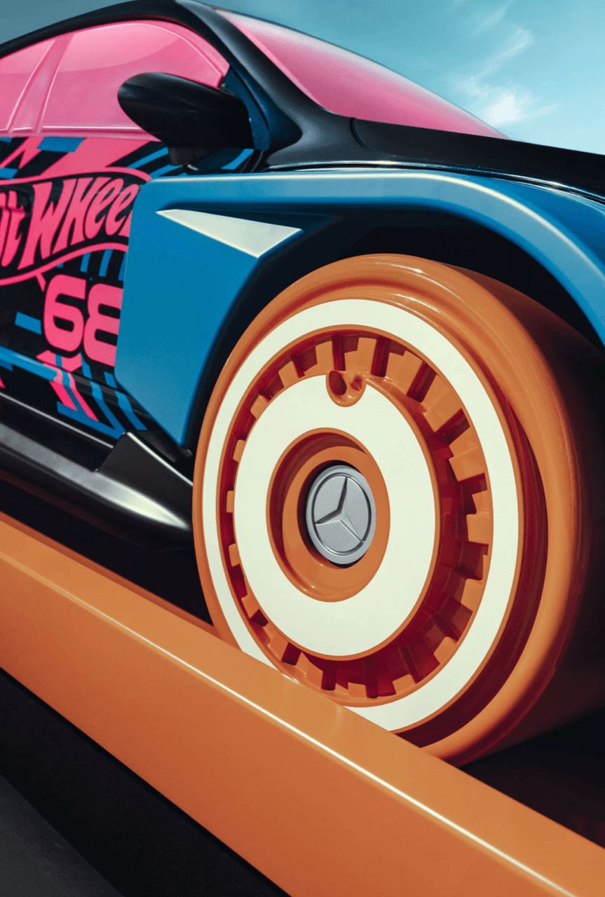 Mercedes ระบุว่าโทนสีนี้ได้รับแรงบันดาลใจมาจากสไตล์คลาสสิกของ Hot Wheels ผสมผสานโทนสีส้มสดใส ชมพู และน้ำเงิน ผู้บริหารของแบรนด์ตราดาว เสริมว่า “ด้วยลวดลายขนาดใหญ่พิเศษทั่วทั้งคัย ให้มุมมองย้อนยุคผสมความล้ำยุคของรถยนต์ไฟฟ้าที่ชวนให้นึกถึงวัฒนธรรมป๊อปยุค 80”
