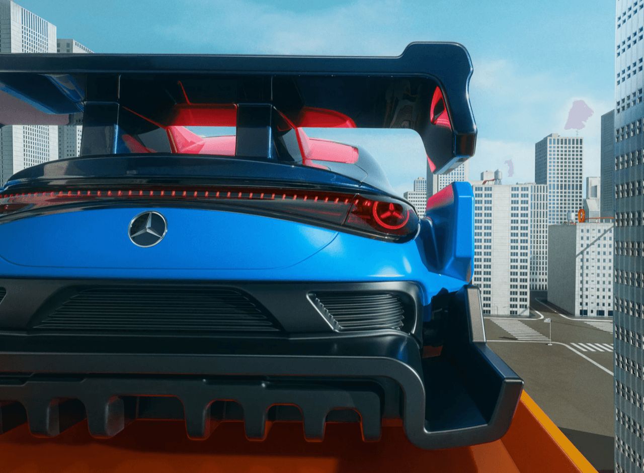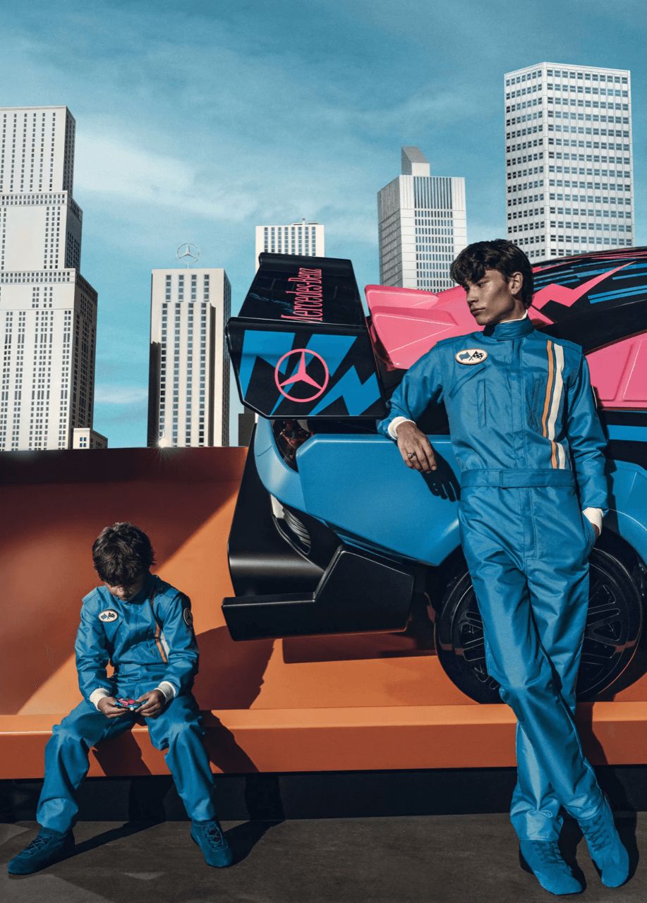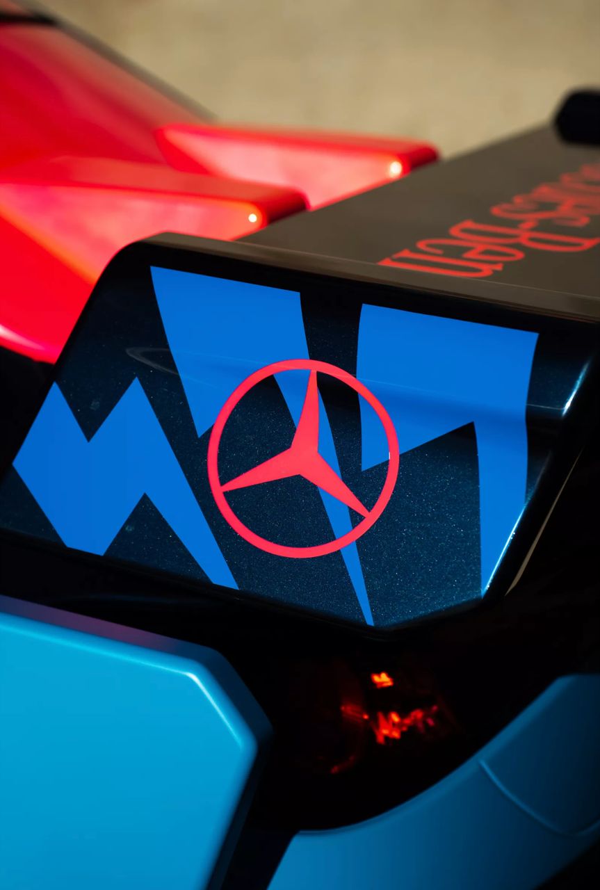 Mercedes ระบุว่าโทนสีนี้ได้รับแรงบันดาลใจมาจากสไตล์คลาสสิกของ Hot Wheels ผสมผสานโทนสีส้มสดใส ชมพู และน้ำเงิน ผู้บริหารของแบรนด์ตราดาว เสริมว่า “ด้วยลวดลายขนาดใหญ่พิเศษทั่วทั้งคัย ให้มุมมองย้อนยุคผสมความล้ำยุคของรถยนต์ไฟฟ้าที่ชวนให้นึกถึงวัฒนธรรมป๊อปยุค 80”