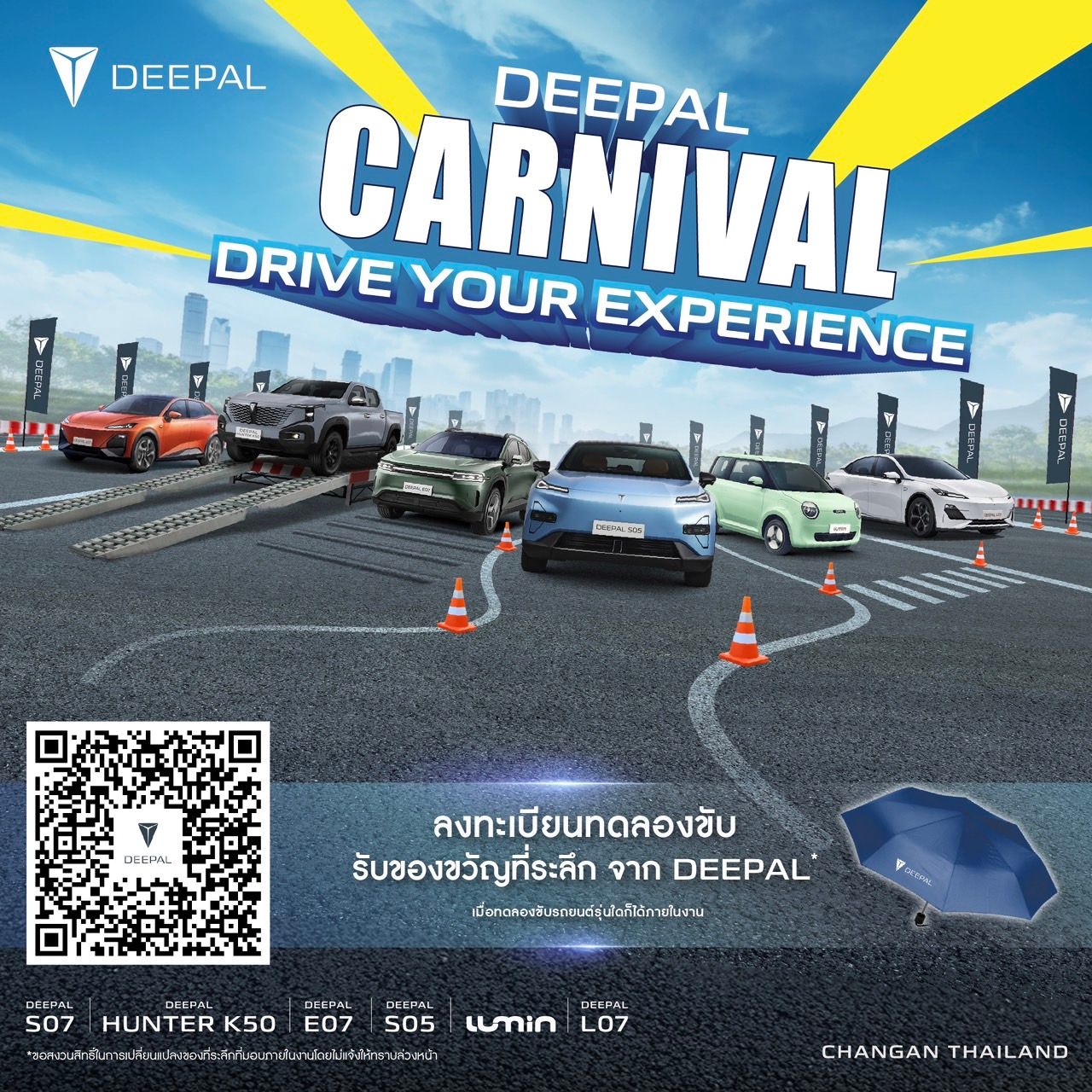 Changan Automobile ชวนร่วมสัมผัสประสบการณ์ยานยนต์ไฟฟ้า ในงาน “DEEPAL CARNIVAL: DRIVE YOUR EXPERIENCE” ตลอดเดือนตุลาคม 2568 ทุกภูมิภาคทั่วไทย หลังจากที่ได้สร้างความสีสันและความคึกคักให้กับชาวกรุงเทพมหานครไปเมื่อวันที่ 3–7 ตุลาคม ที่ผ่านมา CHANGAN เดินหน้าเขย่าวงการยานยนต์ต่อที่ภาคเหนือ ภาคอีสาน และภาคตะวันออก ภายในงาน ทดลองขับรถยนต์ไฟฟ้าแบรนด์ DEEPALครบทุกรุ่นทั้ง DEEPAL S05, DEEPAL S07, DEEPAL L07, DEEPAL E07, DEEPAL HUNTER K50 และ Lumin พร้อมพบโปรโมชันพิเศษ
