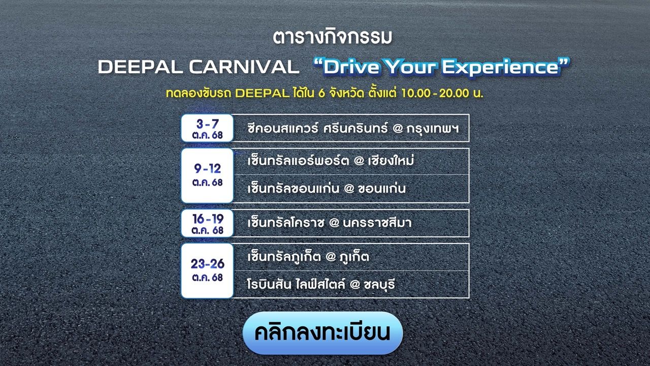 ตารางการจัดงาน “DEEPAL CARNIVAL: DRIVE YOUR EXPERIENCE” มีดังนี้