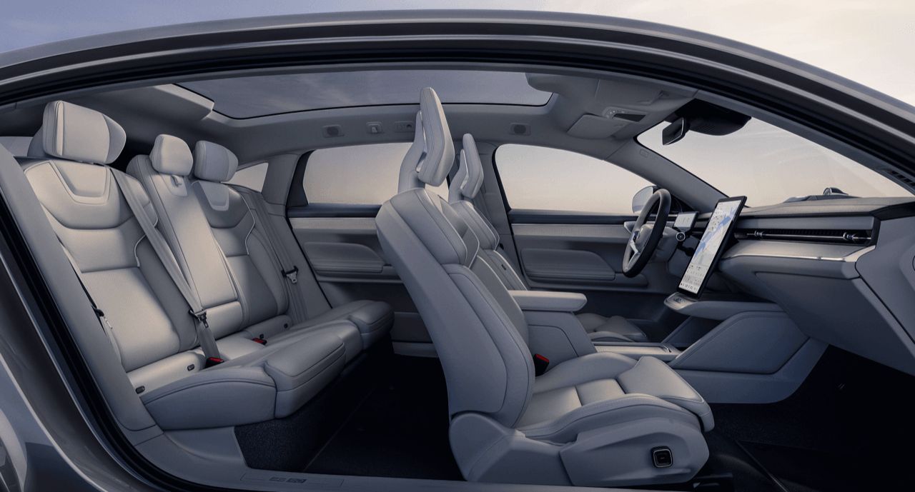 ภายในของห้องโดยสารสะท้อนความสะดวกสบาย และความพรีเมี่ยม ด้วยวัสดุไม้จริงที่ใช้ตกแต่งแดชบอร์ด ประตู และด้านหลังที่นั่ง พร้อมการออกแบบที่คำนึกถึงถึงการใช้งานจริงเป็นสำคัญตามแนวคิดการออกแบบสไตล์สแกนดิเนเวียน ฐานล้อขนาด 3.1 เมตร ให้พื้นที่โดยสารแถวสองที่กว้าง จึงให้การโดยสารที่สบายทั้งเด็ก ผู้ใหญ่ หรือผู้สูงอายุ ธีมไฟบรรยากาศภายในรถสามารถเลือกปรับได้ถึง 6 ธีมสีตามความต้องการผู้ใช้รถ พร้อมเบาะที่นั่งที่เลือกได้ทั้งในแบบหนัง Nappa สีดำ Charcoal และขาว Dawn