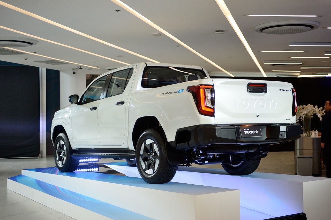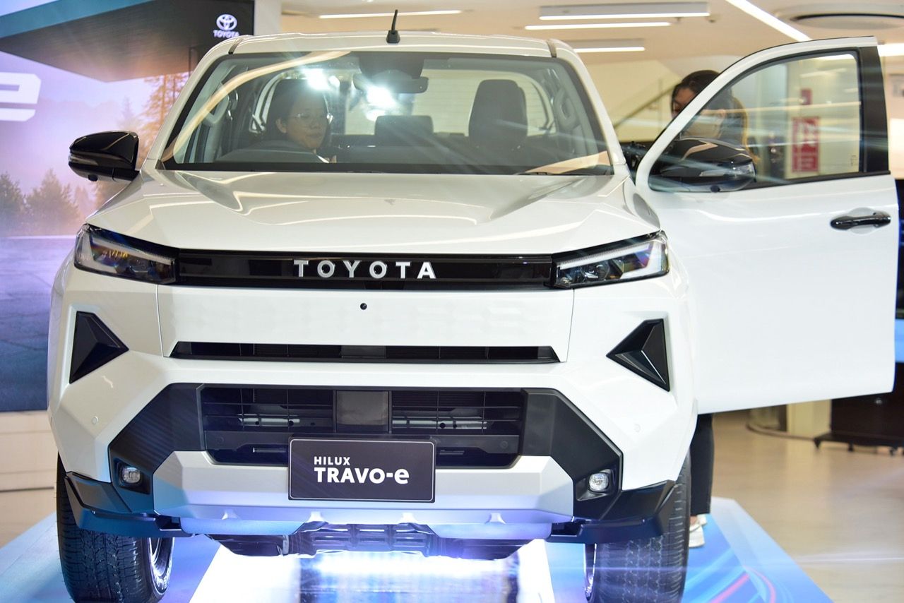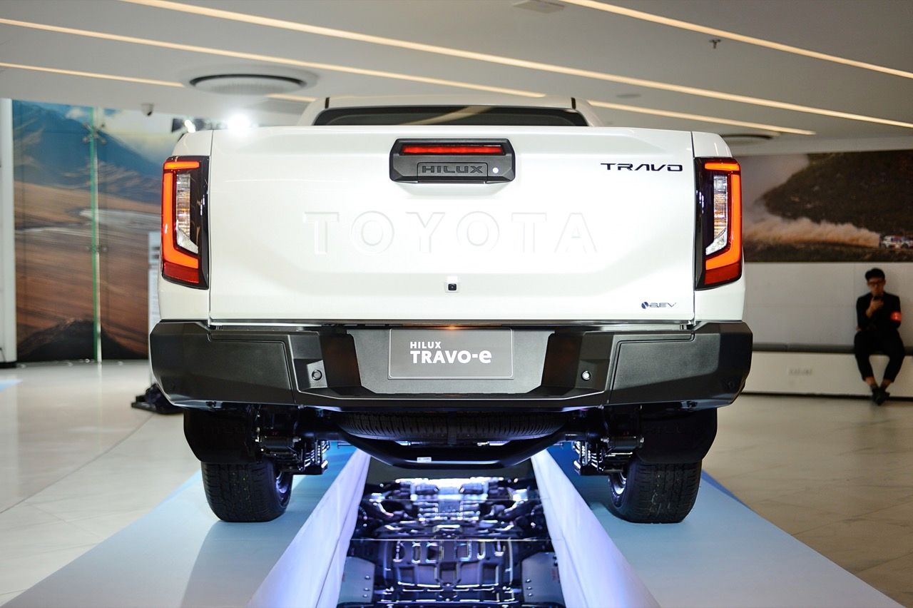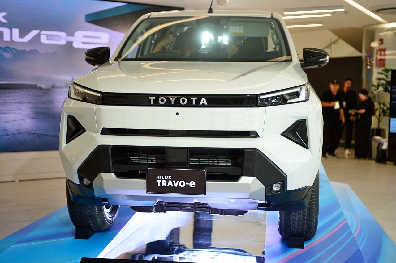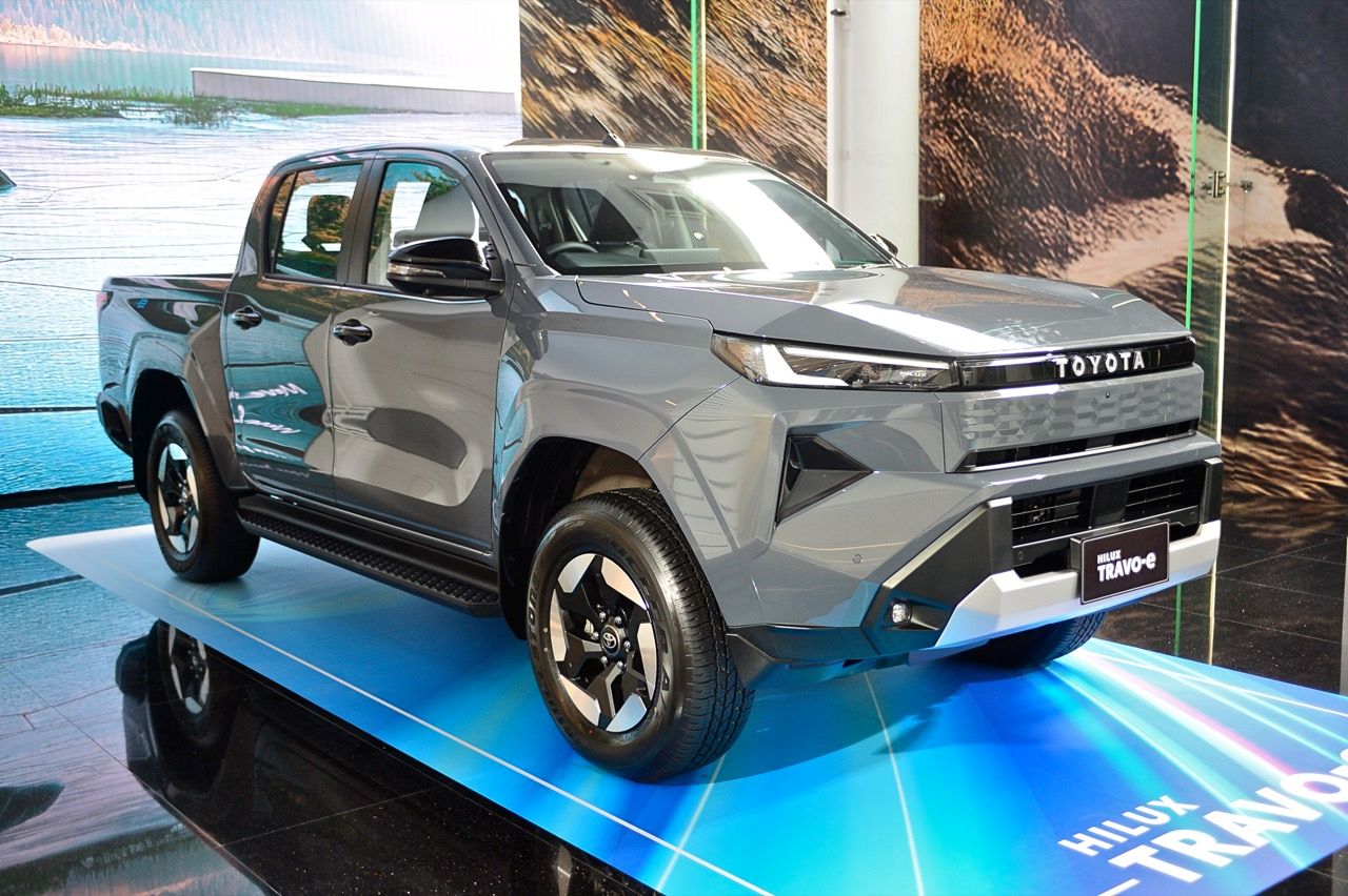 รถกระบะพลังงานสะอาด Hilux Travo-e กระบะไฟฟ้ารุ่นแรกของ Toyota เป็นปิกอัพพลังานไฟฟ้า BEV ระบบขับเคลื่อน มอเตอร์ไฟฟ้าคู่ แบตเตอรี่ลิเธี่ยมไอออน 59.2 kWh จุดชาร์จ อุปกรณ์ส่วนควบอื่นๆ แบตเตอรี่ถูกติดตั้งที่เฟรมด้านล่างของห้องโดยสาร พร้อมเฟรมกันกระแทก มอเตอร์ไฟฟ้าวางอยู่บนเพลาหน้าและหลัง ขับเคลื่อนสี่ล้อ Toyota ออกแบบคานแข็งใหม่ โดยไม่มีเพลากลางส่งกำลังเนื่องจากมอเตอร์ติดตั้งอยู่กับเพลาขับหน้า/หลัง ช่องชาร์จไฟอยู่ที่แก้มด้านซ้ายมือของตัวรถ มอเตอร์คู่ หน้า-หลัง มีกำลังรวม 196 แรงม้า (144 กิโลวัตต์) มอเตอร์หน้า แรงบิดสูงสุด 205 นิวตันเมตร มอเตอร์หลัง แรงบิดสูงสุด 269 มิลลิเมตร และแบตเตอรี่ลิเธี่ยมไอออน ติดตั้งอยู่ด้านล่างของพื้น Hilu Travo-e BEV ทำระยะทางต่อการชาร์จไฟจนเต็มหนึ่งไกล 315 กิโลเมตร รองรับการชาร์จไฟกระแสสลับ AC สูงสุด 10kW รองรับไฟฟ้ากระแสตรง DC แบบชาร์จเร็ว สูงสุด 125 kW