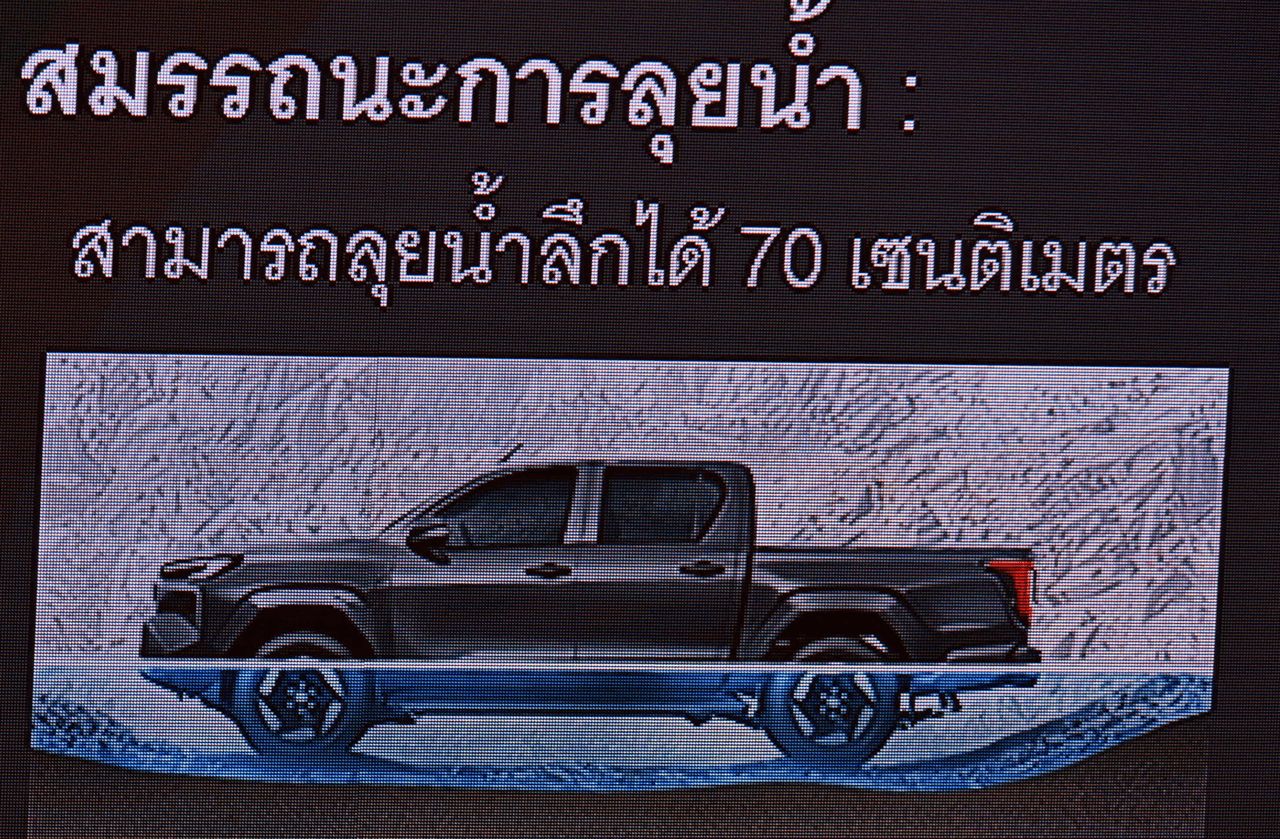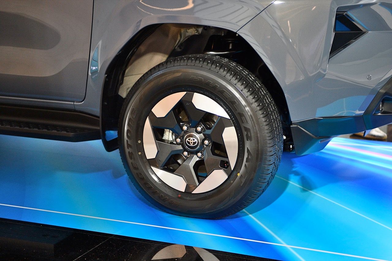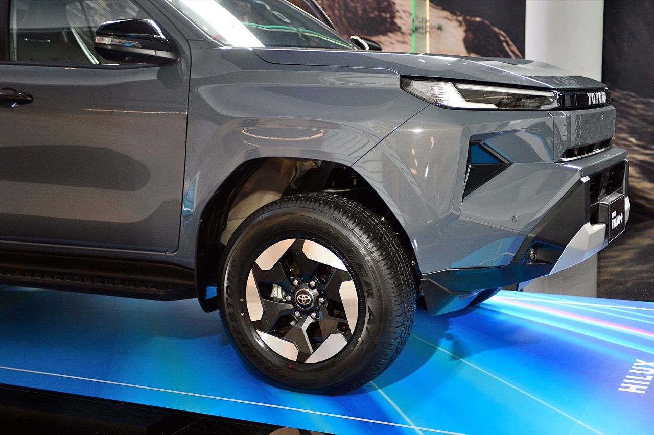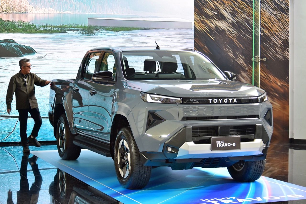รถกระบะพลังงานสะอาด Hilux Travo-e กระบะไฟฟ้ารุ่นแรกของ Toyota เป็นปิกอัพพลังานไฟฟ้า BEV ระบบขับเคลื่อน มอเตอร์ไฟฟ้าคู่ แบตเตอรี่ลิเธี่ยมไอออน 59.2 kWh จุดชาร์จ อุปกรณ์ส่วนควบอื่นๆ แบตเตอรี่ถูกติดตั้งที่เฟรมด้านล่างของห้องโดยสาร พร้อมเฟรมกันกระแทก มอเตอร์ไฟฟ้าวางอยู่บนเพลาหน้าและหลัง ขับเคลื่อนสี่ล้อ Toyota ออกแบบคานแข็งใหม่ โดยไม่มีเพลากลางส่งกำลังเนื่องจากมอเตอร์ติดตั้งอยู่กับเพลาขับหน้า/หลัง ช่องชาร์จไฟอยู่ที่แก้มด้านซ้ายมือของตัวรถ มอเตอร์คู่ หน้า-หลัง มีกำลังรวม 196 แรงม้า (144 กิโลวัตต์) มอเตอร์หน้า แรงบิดสูงสุด 205 นิวตันเมตร มอเตอร์หลัง แรงบิดสูงสุด 269 มิลลิเมตร และแบตเตอรี่ลิเธี่ยมไอออน ติดตั้งอยู่ด้านล่างของพื้น Hilu Travo-e BEV ทำระยะทางต่อการชาร์จไฟจนเต็มหนึ่งไกล 315 กิโลเมตร รองรับการชาร์จไฟกระแสสลับ AC สูงสุด 10kW รองรับไฟฟ้ากระแสตรง DC แบบชาร์จเร็ว สูงสุด 125 kW