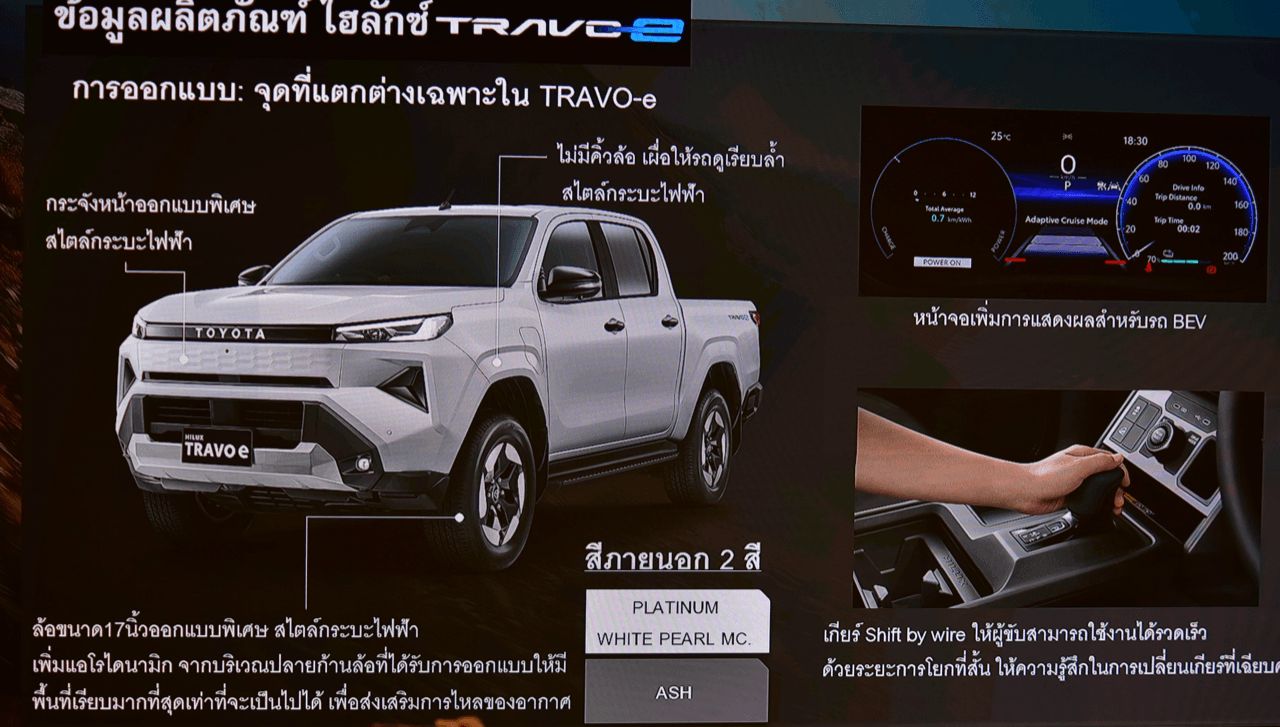 กระบะ BEV พลังงานไฟฟ้า แม้จะมีเข้ามาขายบ้างแล้วในตลาดรถยนต์กระบะของไทย ซึ่งส่วนใหญ่ เป็นแบรนด์รถยนต์ไฟฟ้าจีนนั้นก็ยังไม่ได้รับความนิยมเท่าที่ควร สำหรับกระบะไฟฟ้า Toyota Hilux Travo-e น่าจะได้รับความสนใจเพิ่มมากขึ้นอย่างต่อเนื่อง เนื่องจากมีการกระตุ้นให้เกิดการใช้งานกระบะ BEV ขนส่งสินค้าในเมืองเพื่อลดมลพิษ ส่วนกระบะ Hilux ดีเซลนั้น เน้นการใช้งานขนส่งระยะไกลที่ต้องบรรทุกสินค้าหรืออุปกรณ์ต่างๆ เพื่อการทำงาน เนื่องจากมีระยะทางในการวิ่งไกลกว่า ตอบโจทย์การใช้งานได้อย่างครอบคลุมมากกว่า.