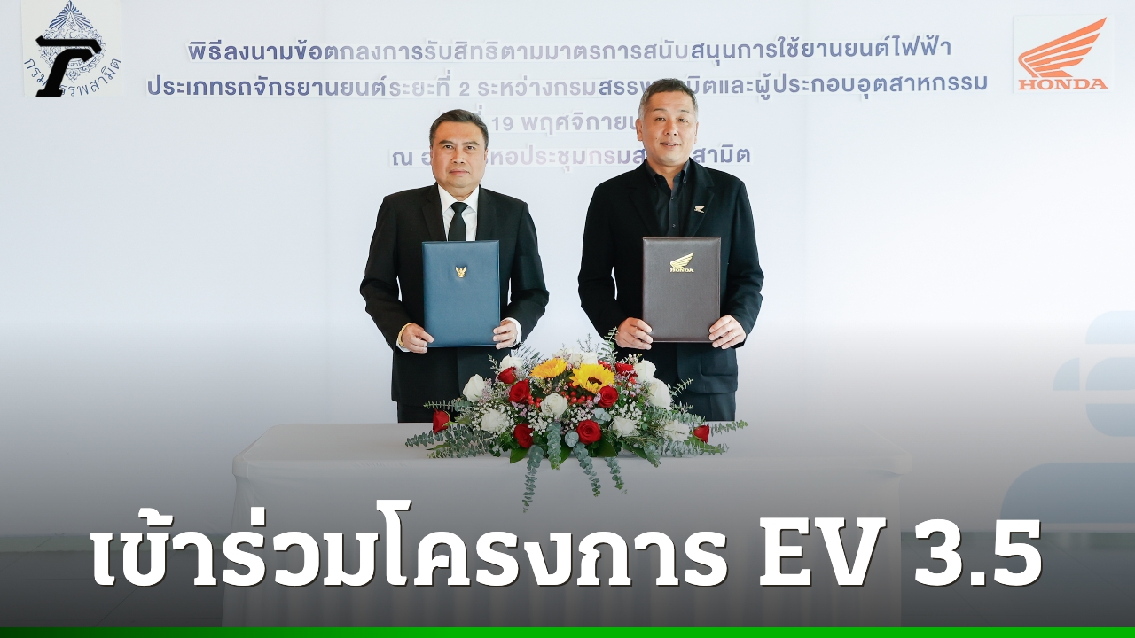 ไทยฮอนด้า ร่วมลงนามข้อตกลงมาตรการสนับสนุนการใช้ยานยนต์ไฟฟ้ารอบ 2 หรือ EV 3.5 พร้อมเดินหน้าพัฒนาจักรยานยนต์ไฟฟ้า สู่เป้าหมาย Carbon Neutrality ปี 2593