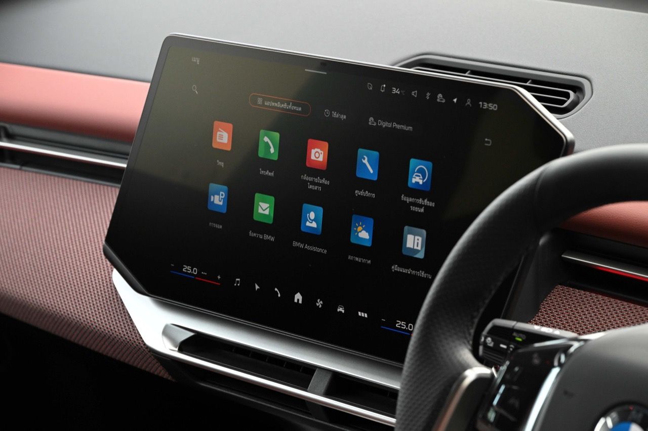 Bidirectional Charging รองรับการจ่ายไฟฟ้าจากตัวรถสู่อุปกรณ์ภายนอกหรือบ้าน (V2H/V2L) ระบบอินโฟเทนเมนท์และหน้าจอBMW Panoramic Vision หน้าจอแสดงผลข้อมูลการขับขี่และบันเทิงใหม่เอี่ยมถอดด้าม ซิงๆกับรูปแบบจอใหม่ที่ทอดยาวตลอดความกว้างของกระจกบังลมหน้าส่วนล่าง Central Display หน้าจอสัมผัสกลางขนาด 17.9 นิ้ว เอียงเข้าหาผู้ขับ พร้อมระบบปฏิบัติการ BMW Operating System X 3D Head-Up Display ระบบแสดงผลเหนือคอนโซลแบบ 3 มิติที่รวมระบบนำทางและข้อมูลการขับขี่อัตโนมัติไว้ด้วยกัน