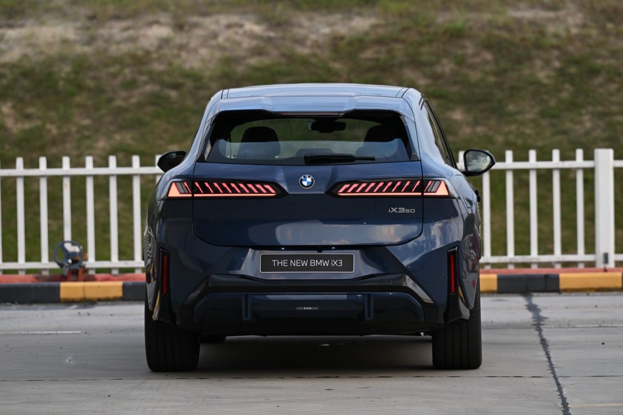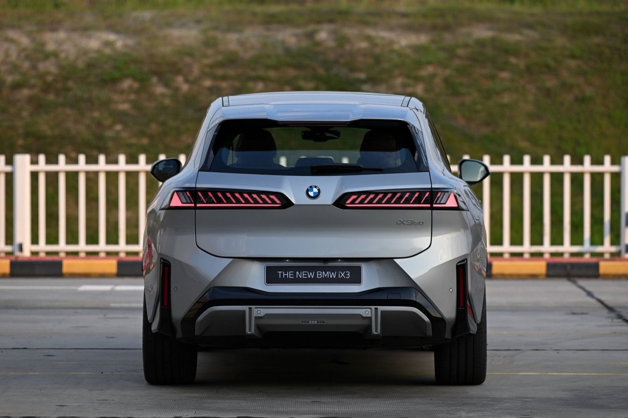 iX3 50 xDrive M Sport วางแนวทางของงานดีไซน์ด้วยการปรับเปลี่ยนใหม่หมดทั้งคัน นำเอกลักษณ์ดั้งเดิม มาตีความจากมุมมองใหม่ที่ล้ำสมัย กระจังหน้าทรงไตคู่ในรุ่นนี้จัดวางมาในแนวตั้ง คล้ายคลึงกับกระจังหน้าของรถยนต์ Neue Klasse รุ่นดั้งเดิมจากทศวรรษ 1960 ติดตั้งระบบไฟ BMW Iconic Glow แทนการใช้กรอบโครเมียมในรุ่นเดิม มือจับประตูทั้ง 4 ติดตั้งระบบไฟส่องสว่าง ฝาปิดช่องชาร์จส่วนท้ายรถ นำ AI มาวิเคราะห์ว่าผู้ขับขี่ตั้งใจจะจอดรถเพื่อชาร์จแบตเตอรี่หรือไม่ ก่อนจะทำการเปิด-ปิดฝาแบบอัตโนมัติ ด้านข้าง iX3 มีพื้นผิวตัวถังขนาดใหญ่ ตัดด้วยเส้นสายที่แม่นยำ สร้างรูปลักษณ์และเหลี่ยมมุมที่มีเอกลักษณ์เฉพาะตัว ซุ้มล้อทรงเหลี่ยม เข้ากับล้อ BMW Individual aerodynamic ขอบ 22 นิ้ว ไฟท้ายทอดยาวในแนวนอนเข้าสู่จุดกึ่งกลางของตัวรถ พื้นที่เก็บสัมภาระ 1,750 ลิตร เมื่อพับพนักพิงเบาะหลังลง มีช่องเก็บของเพิ่มเติมใต้ฝากระโปรงหน้าความจุ 58 ลิตร