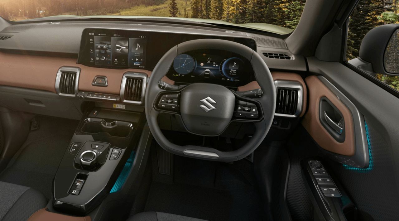 การออกแบบภายในห้องโดยสาร ALL NEW SUZUKI e VITARA หน้าจอแสดงผลแบบ Integrated Display System เชื่อมต่อข้อมูลการขับขี่และฟังก์ชันการใช้งาน โดยแบ่งการแสดงผลออกเป็นหน้าจอมาตรวัดขนาด 10.25 นิ้ว ที่รองรับการปรับรูปแบบการแสดงผลได้ 3 รูปแบบ หน้าจอระบบสัมผัสบริเวณคอนโซลกลางขนาด 10.1 นิ้ว รองรับการเชื่อมต่อสมาร์ตโฟนผ่าน Apple CarPlay และ Android Auto ระบบเครื่องเสียงคุณภาพสูงจาก Infinity ติดตั้งลำโพง 8 ตำแหน่ง พร้อมซับวูฟเฟอร์และแอมพลิไฟเออร์ ทำงานร่วมกับ Digital Signal Processor เพื่อปรับแต่งคุณภาพเสียงให้มีความสมดุล คมชัด และสมจริงในทุกมิติ ไฟสร้างบรรยากาศภายในห้องโดยสาร ปรับเปลี่ยนได้ 12 เฉดสี ปรับระดับความสว่างได้ 7 ระดับ แผงประตูดีไซน์เฉพาะตัว คอนโซลหน้าทรงสูง ระบบปรับอากาศแบบอัตโนมัติ พร้อมแผ่นกรองอากาศ PM 2.5 และแท่นชาร์จไร้สาย พวงมาลัยดีไซน์ในรูปทรงสี่เหลี่ยมโค้งมนด้านล่าง ช่วยเพิ่มความสะดวกในการขึ้น-ลงรถ พร้อมติดตั้งปุ่มควบคุมฟังก์ชันต่างๆ เบาะนั่งที่ถูกออกแบบเพื่อรองรับความสะดวกสบายในการขับขี่ เบาะนั่งด้านคนขับปรับไฟฟ้า 10 ทิศทาง ระบบปรับความอุ่นของเบาะนั่งคู่หน้า เบาะผู้โดยสารตอนหลังปรับพับได้แบบ 4:2:4 สามารถสไลด์เลื่อนหน้า-หลังได้ คอนโซลกลางดีไซน์ลอยตัว ระบบควบคุมโหมดขับขี่ (Shift-by-wire) รองรับโหมดการขับขี่ AUTO, TRAIL, PEDAL Mode และ Hill Descent Control เบรกมือไฟฟ้า ระบบหน่วงเบรกอัตโนมัติทันทีที่ยกเท้าออกจากแป้นเบรก