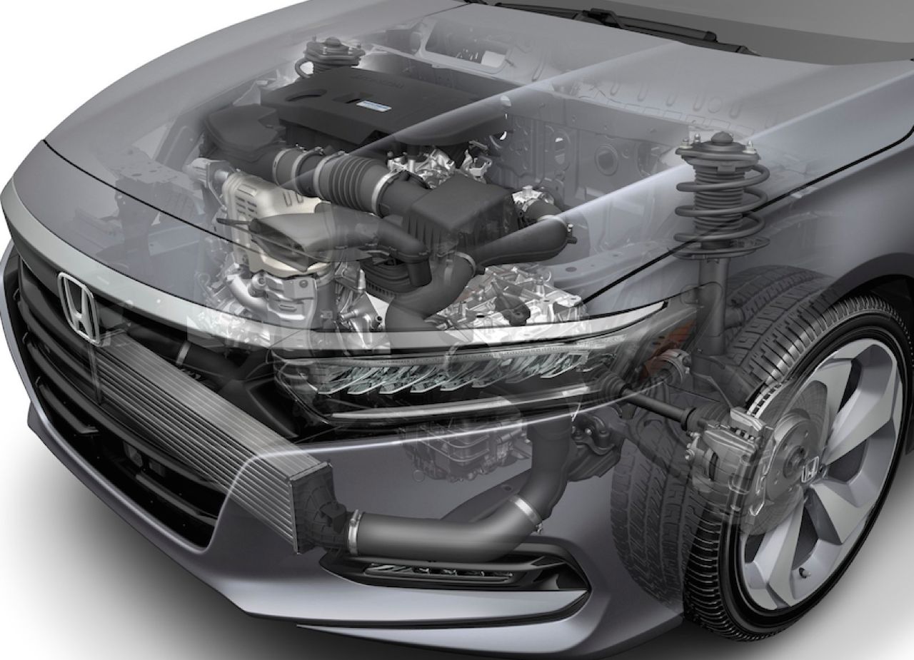 Honda New Accord รุ่นสูงขึ้นมาอีกนิดในตลาดซีดานกลางของอเมริกา วางเครื่องยนต์เบนซิน DOHC 4 สูบ Direct Injectionขนาด 2.0 ลิตร i-VTEC อัดอากาศด้วยเทอร์โบแปรผัน กำลังสูงสุด 252 แรงม้า ที่ 6,500 รอบ/นาที แรงบิดสูงสุดว่ากันถึง 370 นิวตันเมตร จับคู่เกียร์อัตโนมัติ 10 จังหวะ หรือ เกียร์ธรรมดา 6 จังหวะ ขับเคลื่อนล้อหน้า ส่วน Accord รุ่นสูงสุดเครื่องยนต์V6 3.5 ลิตร ที่เคยขายนั้นไม่มีอีกต่อไปเนื่องจากซดเชื้อเพลิงและปล่อย Co2 สูงเกิน