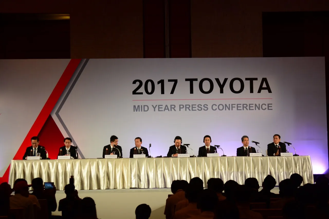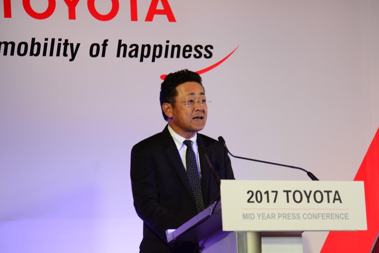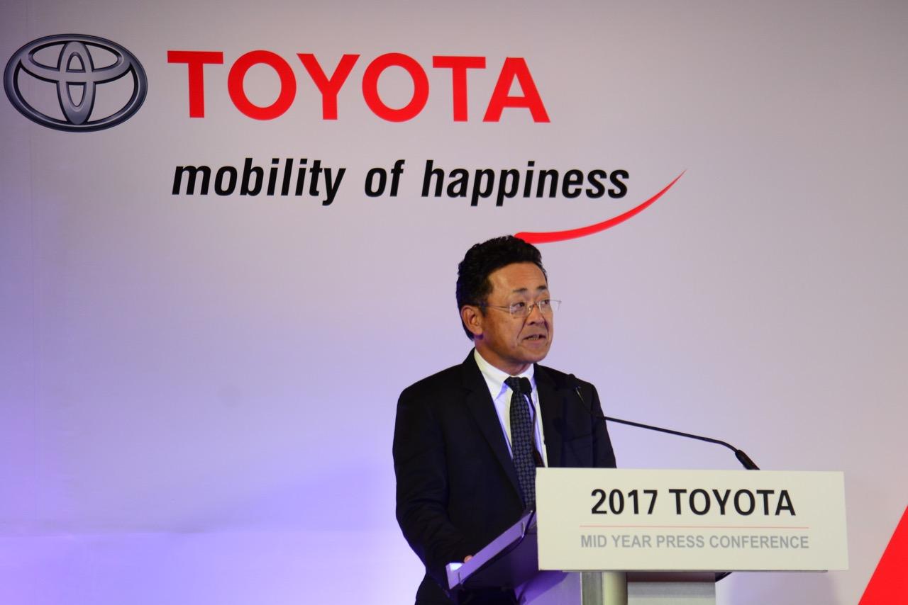 มิจิโนบุ ซึงาตะ เจ้าหน้าที่บริหาร บริษัท โตโยต้า มอเตอร์ คอร์ปอเรชั่น และกรรมการผู้จัดการใหญ่ บริษัท โตโยต้า มอเตอร์ ประเทศไทย จำกัด แถลงสถิติการจำหน่ายรถยนต์ ครึ่งแรกของปี 2560 พร้อมปรับประมาณการตลาดรถยนต์ไทยปี 2560