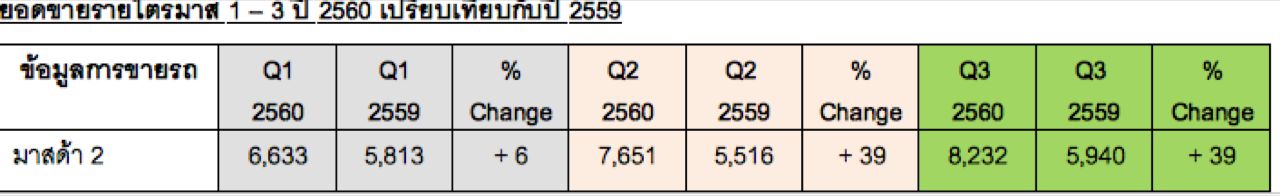 โดยไตรมาสแรกของปีนี้เติบโตเพิ่มขึ้นเล็กน้อย 6% แต่ในช่วงไตรมาสที่ 2 กลับร้อนแรงทะลุถึง 20% และไตรมาสที่ 3 ทะยานเพิ่มสูงขึ้นอีก 20% ส่วนไตรมาสสุดท้ายยังมีรถยนต์รุ่นใหม่เตรียมเข้ามาเสริมทัพสร้างความแข็งแกร่ง