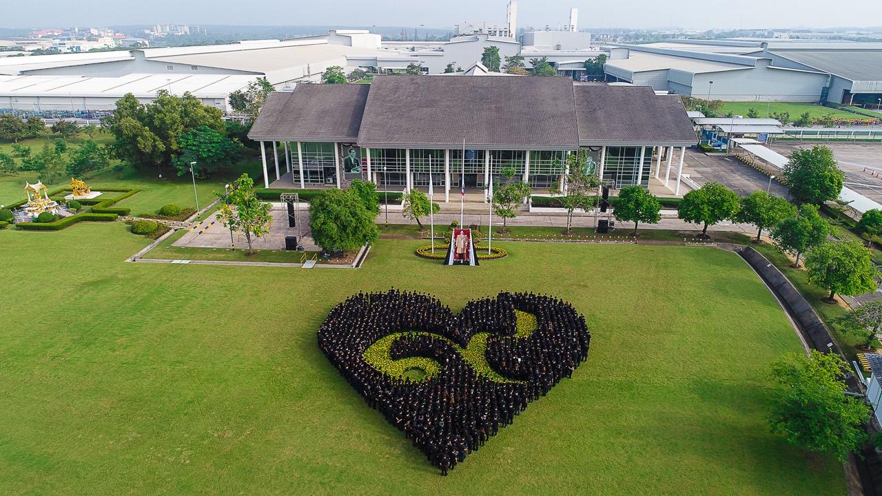 ระยอง – พนักงานกว่า 1,500 คนของกลุ่มบริษัทเจนเนอรัล มอเตอร์ส ในประเทศไทย และเชฟโรเลต เซลส์ ประเทศไทย ร่วมน้อมรำลึกถึงพระมหากรุณาธิคุณของพระบาทสมเด็จพระปรมินทรมหาภูมิพลอดุลยเดช ณ ศูนย์การผลิตจีเอ็มในจังหวัดระยอง ด้วยการจัดกิจกรรม “เรียงร้อยดวงใจ ส่งไปถึงพ่อ” มีการแปรอักษรสัญลักษณ์เป็นรูปหัวใจล้อมรอบดอกดาวเรือง จำนวน 9,000 ดอก ที่เรียงร้อยกันเป็นเลข ๙