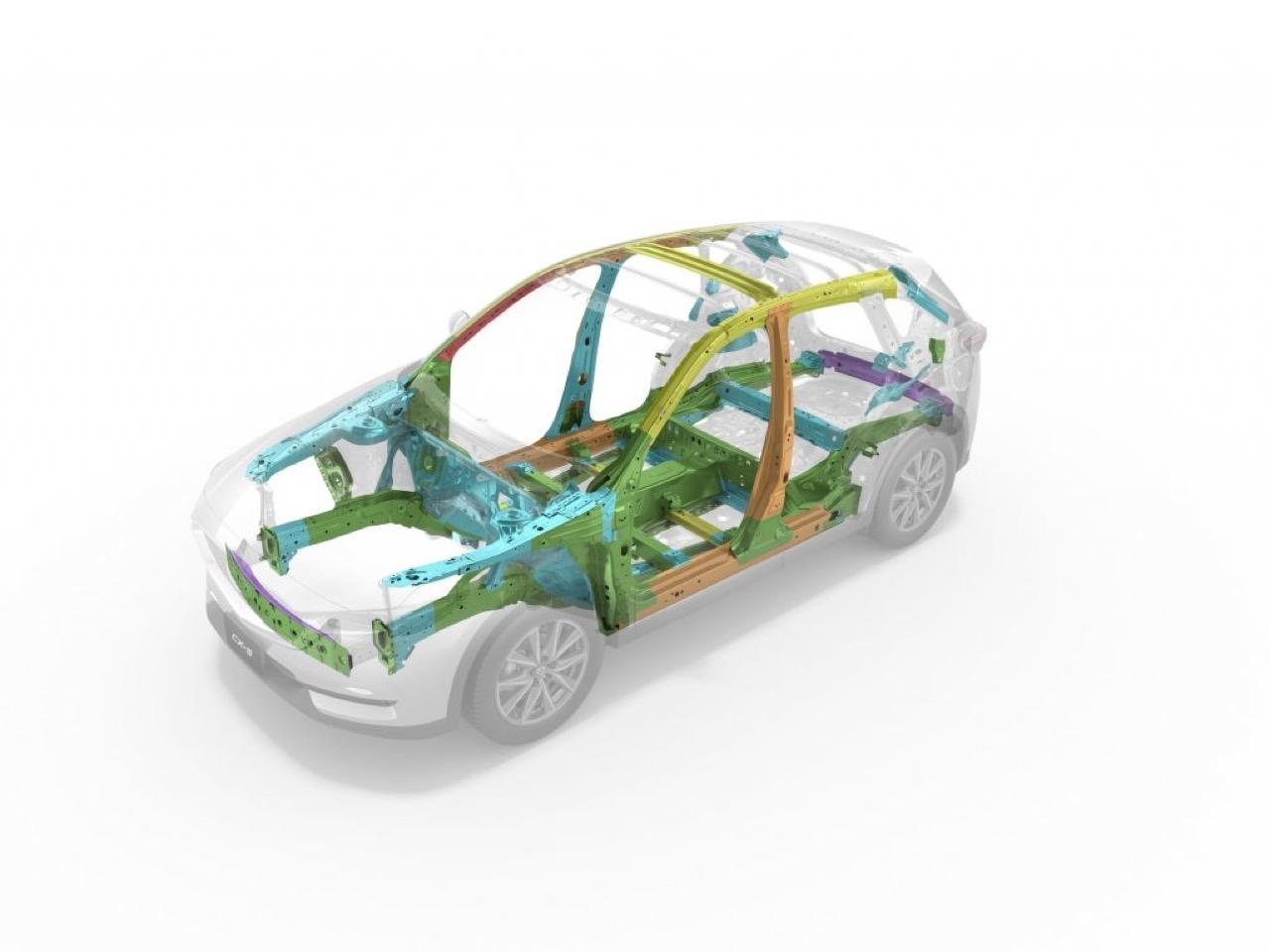 SKYACTIV-BODY โครงสร้างตัวถังสกายแอคทีฟ โครงสร้างตัวถังที่ผลิตจากเหล็กกล้าคุณภาพสูง High Tensile Steel น้ำหนักเบาและแข็งแกร่ง ให้การควบคุมรถที่มั่นคง ช่วยลดแรงสะเทือนจากถนน และกระจายแรงปะทะที่เข้าสู่ห้องโดยสารในกรณีที่เกิดอุบัติเหตุ