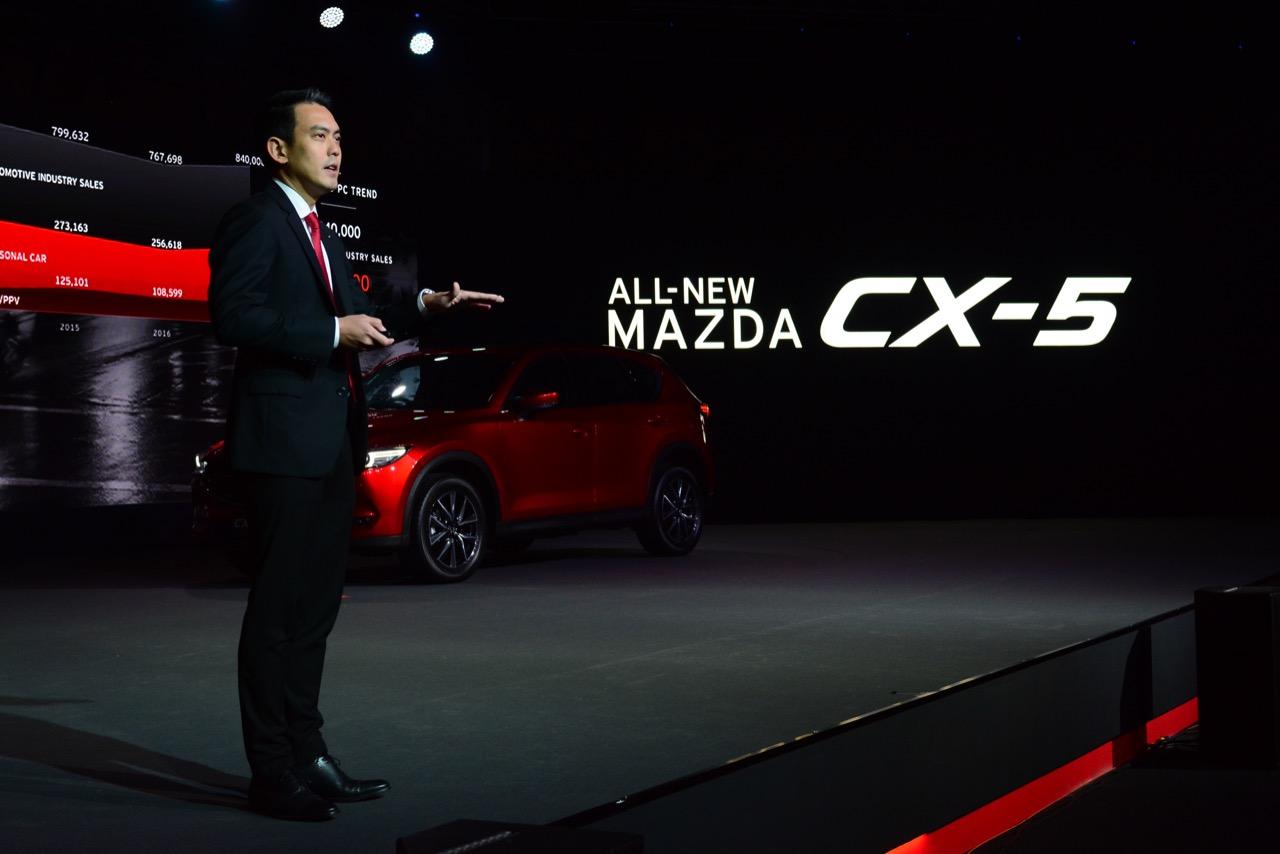 ฮิโรชิ อิโนอุเอะ เจ้าหน้าที่บริหารระดับสูง มาสด้า มอเตอร์ คอร์ปอเรชั่น ประเทศญี่ปุ่น กำกับดูแลมาสด้าในภูมิภาคอาเซียน กล่าวว่า รถยนต์มาสด้า CX-5 เผยโฉมสู่สาธารณชนทั่วโลกครั้งแรกเมื่อปี 2555 และเข้าสู่ตลาดประเทศไทย เมื่อเดือนพฤศจิกายน 2556 ในฐานะรถยนต์รุ่นแรกที่มาพร้อม “SKYACTIV TECHNOLOGY” และการออกแบบภายใต้ “KODO Design” Soul of Motion รถยนต์มาสด้า CX-5 กลายเป็นรถอเนกประสงค์เอสยูวีที่ได้รับเสียงตอบรับอย่างดียิ่งจากลูกค้าทั่วโลกภายในเวลาอันรวดเร็ว จนสามารถคว้ารางวัลรถยนต์ยอดเยี่ยมในประเทศญี่ปุ่น และรางวัลอันทรงเกียรติอีกมากมายจากทั่วทุกมุมโลก