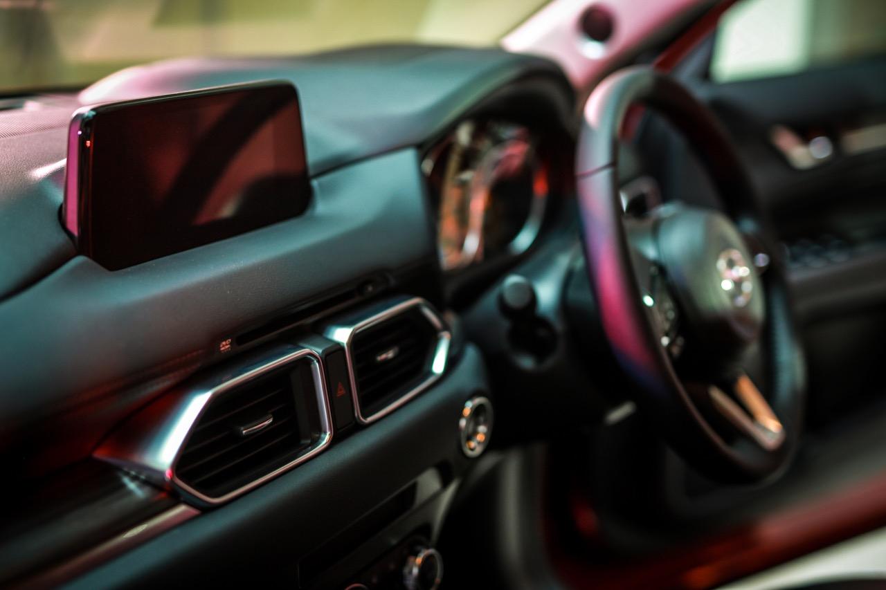 CX-5 โฉมใหม่ ได้รับการออกแบบดุจงานศิลปะชั้นสูงอย่างประณีตในทุกรายละเอียด ด้วยแนวคิด “Hand-Crafted Design” คัดสรรวัสดุคุณภาพเกรดพรีเมียม เปี่ยมด้วยกลิ่นอายแห่งความหรูหราสไตล์ยุโรป ให้ความประทับใจในทุกการสัมผัส คอนโซลหน้าแบบ Metal Wood ผสานความสปอร์ตด้วยเบาะหนังสีดําแต่งด้วยด้ายสีน้ำตาล