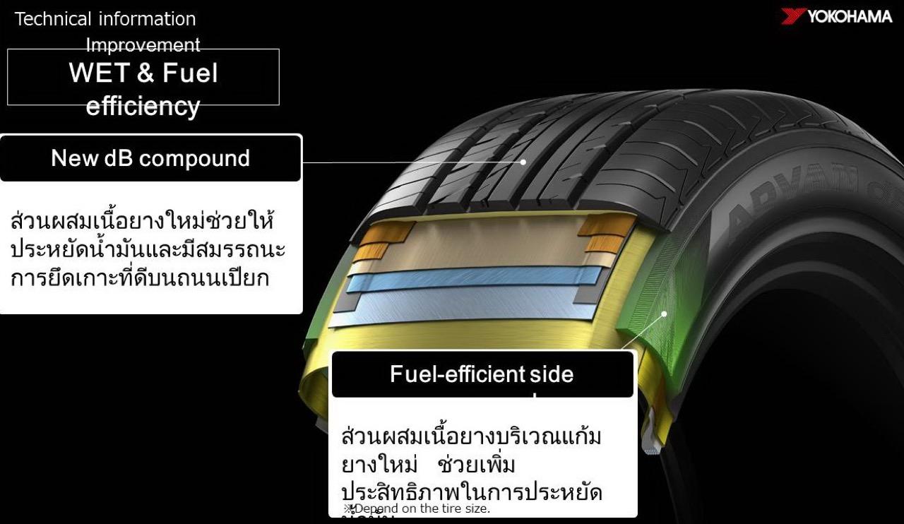 เนื้อยาง dB สูตรใหม่ ส่วนประกอบเนื้อยางสามารถผสาน และยึดเกาะไปกับความขรุขระของพื้นผิวถนนให้ดียิ่งขึ้น ช่วยลดการสั่นสะเทือน เพื่อการขับขี่ที่นุ่มนวลสะดวกสบายที่เหนือกว่า และยังเพิ่มความปลอดภัยขณะขับขี่บนถนนเปียก นอกจากนั้น ยังพัฒนาส่วนผสมเนื้อยางบริเวณแก้มยางให้มีความแข็งแรงมากขึ้น ช่วยยืดอายุการใช้งานของยางให้ยาวนาน และช่วยเพิ่มประสิทธิภาพในการประหยัดน้ำมัน