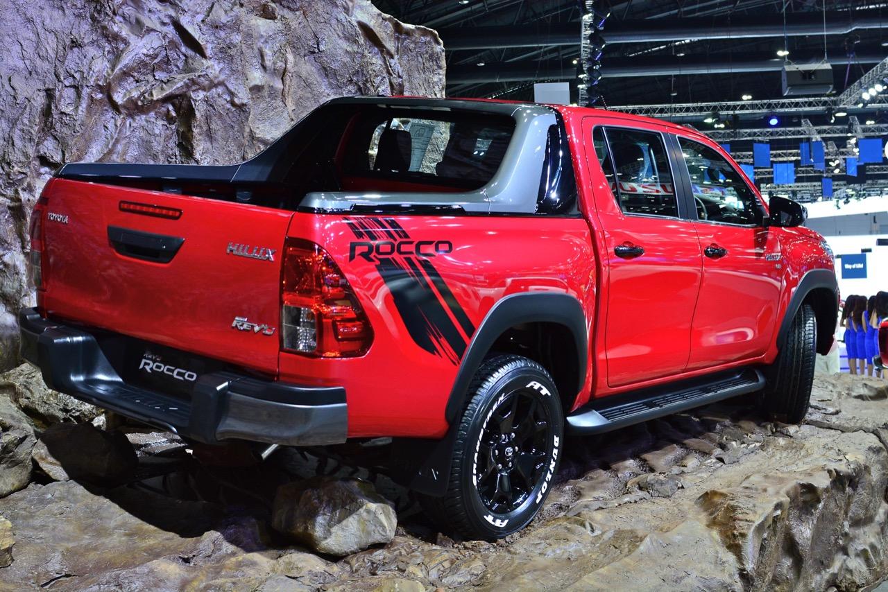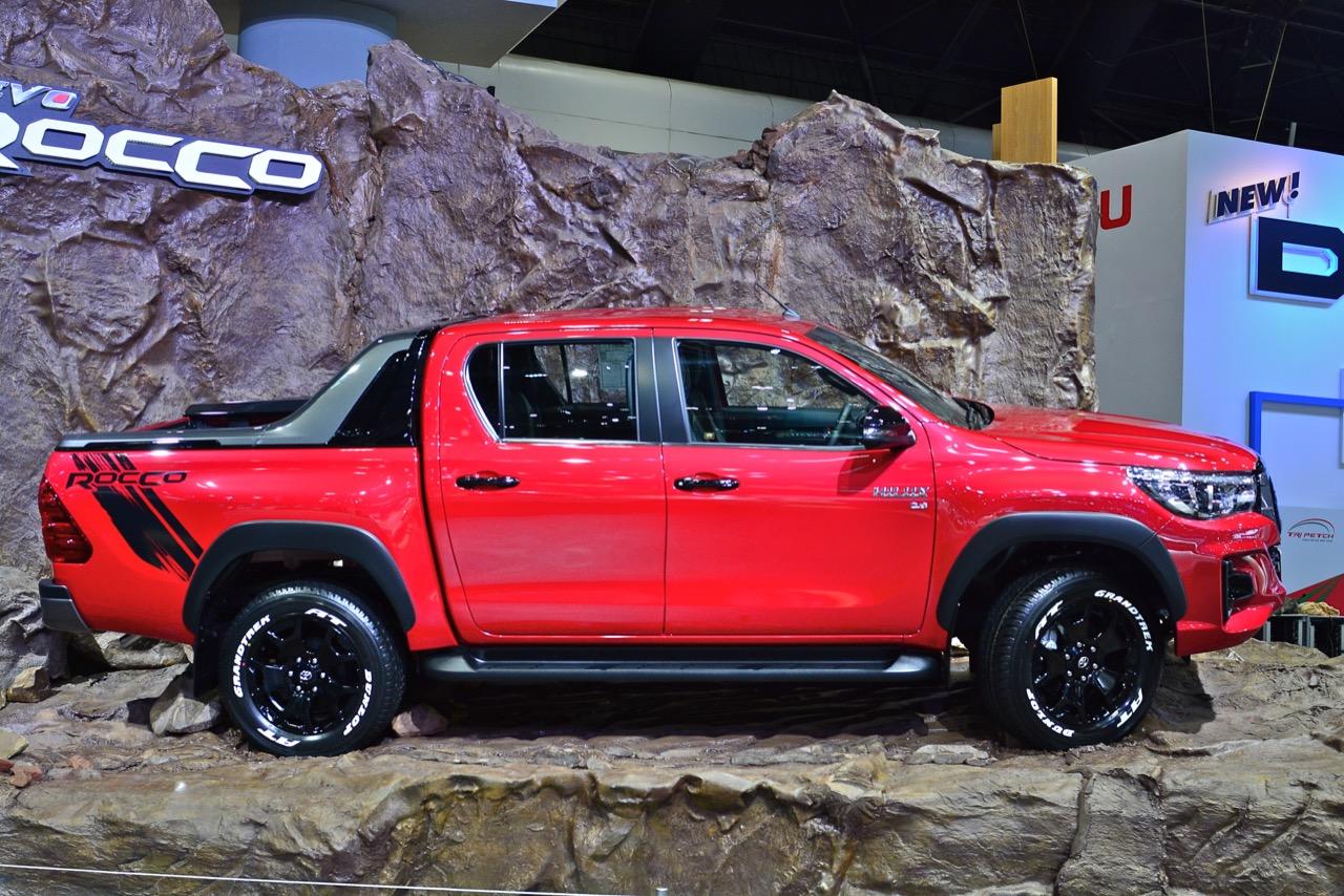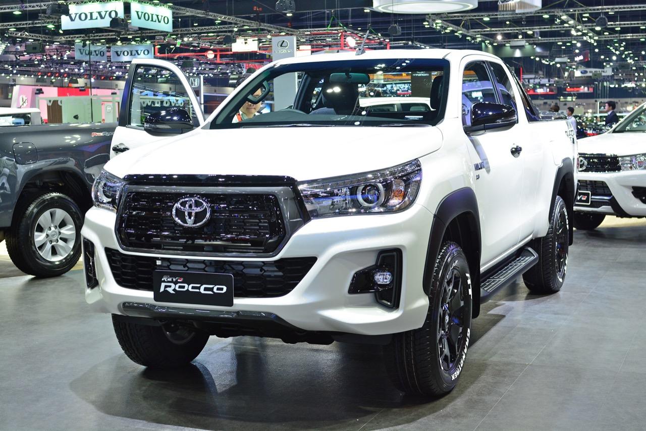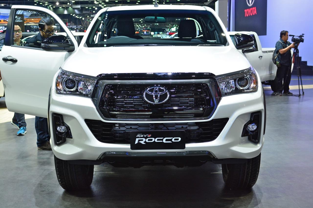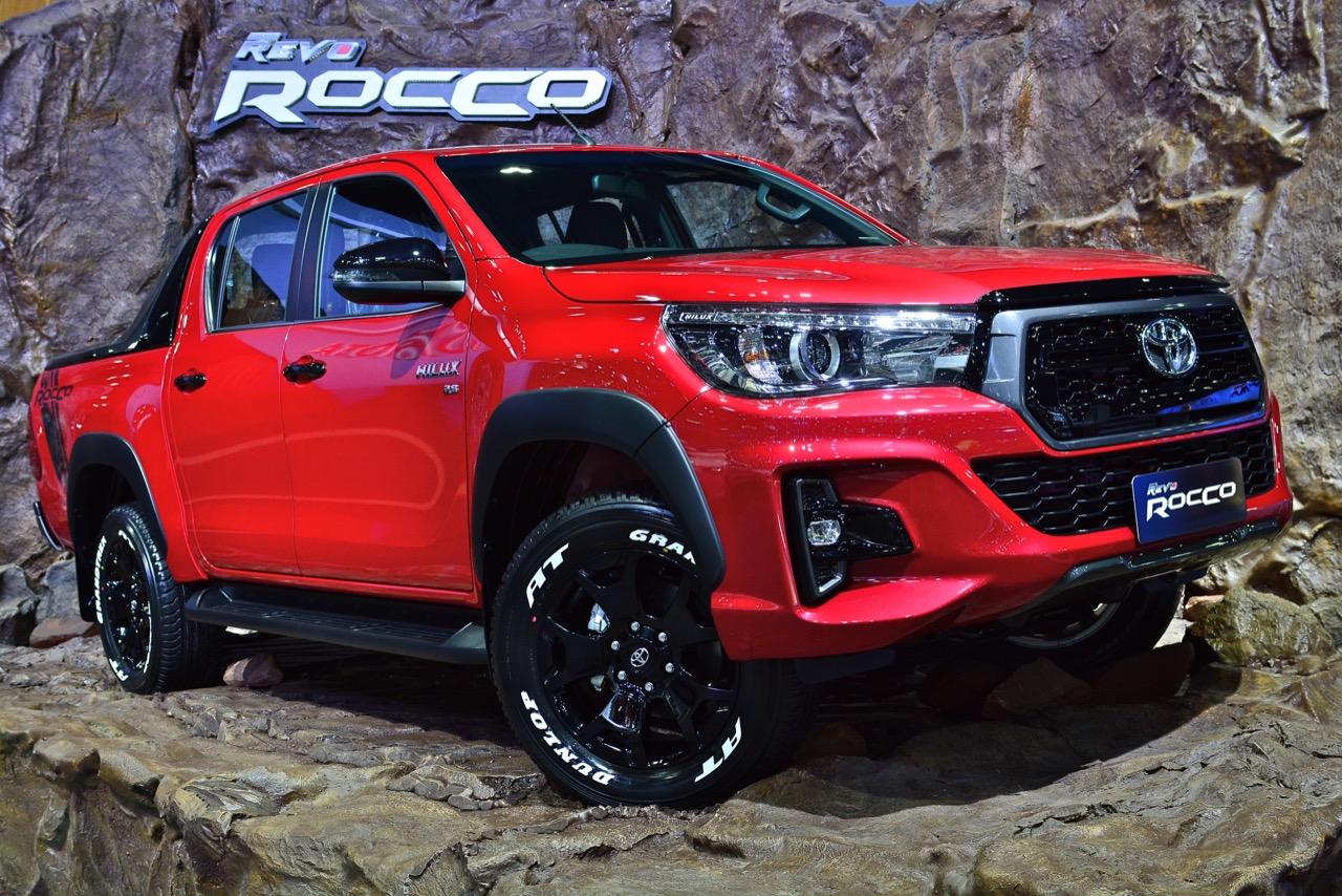 สามห่วงทะลวงโหด Hilux REVO รุ่นปรับปรุงโฉมกับตัวสุดอย่าง REVO Rocco รถกระบะแต่งเต็มจากพี่โต มีให้เลือกทั้งแบบ 2 ประตูและ 4 ประตู Hilux REVO Rocco เครื่องยนต์ดีเซล รหัส 1GD-FTV ขนาด 2.8 ลิตร 2,755 ซี.ซี. VN-Turbo กำลังสูงสุด 177 แรงม้า แรงบิดสูงสุด 420 – 450 นิวตันเมตร ระบบส่งกำลังมีเกียร์ธรรมดา 6 จังหวะ และเกียร์อัตโนมัติ 6 จังหวะ ให้เลือก Hilux REVO Rocco เป็นรถกระบะที่มีดีไซน์ดุดันจากชุดแต่งที่สร้างความแตกต่างไปจาก REVO รุ่นมาตรฐาน ด้วยชุดแต่งพิเศษรอบคัน ทั้งภายนอกและภายใน อุปกรณ์อำนวยความสะดวกครบ Hilux REVO Rocco รุ่นปรับปรุงโฉมใหม่ฟรีประกันภัยชั้น 1 โตโยต้าแคร์