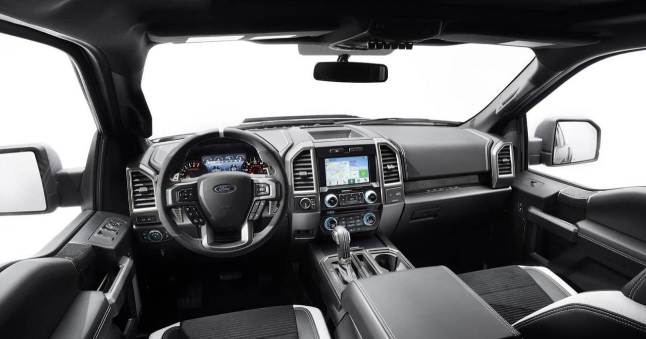 ภายในแม้จะแข็งทื่อและอุดมไปด้วยพลาสติกเกรดต่ำแต่ดูโหดสมกับตัวตนของปิกอัพสมรรถนะสูงภายในของ Ford F-150 Raptor Super Crew 2017 ตกแต่งสไตล์มะกันที่ยังดูโบราณบานบุรี เอาเข้าจริงๆ ภายในของ Ranger รุ่นใหม่ยังทำออกมาดูดีกว่าเห็นๆ Ford ยกระดับความกว้างของห้องโดยสารรองรับคนอเมริกันที่ส่วนใหญ่ตัวอ้วนยังกับหมี โดยลงมือปรับปรุงบานประตูและตำแหน่งเบาะนั่งหลังใหม่ให้มีขนาดที่ใหญ่และกว้างมากขึ้น