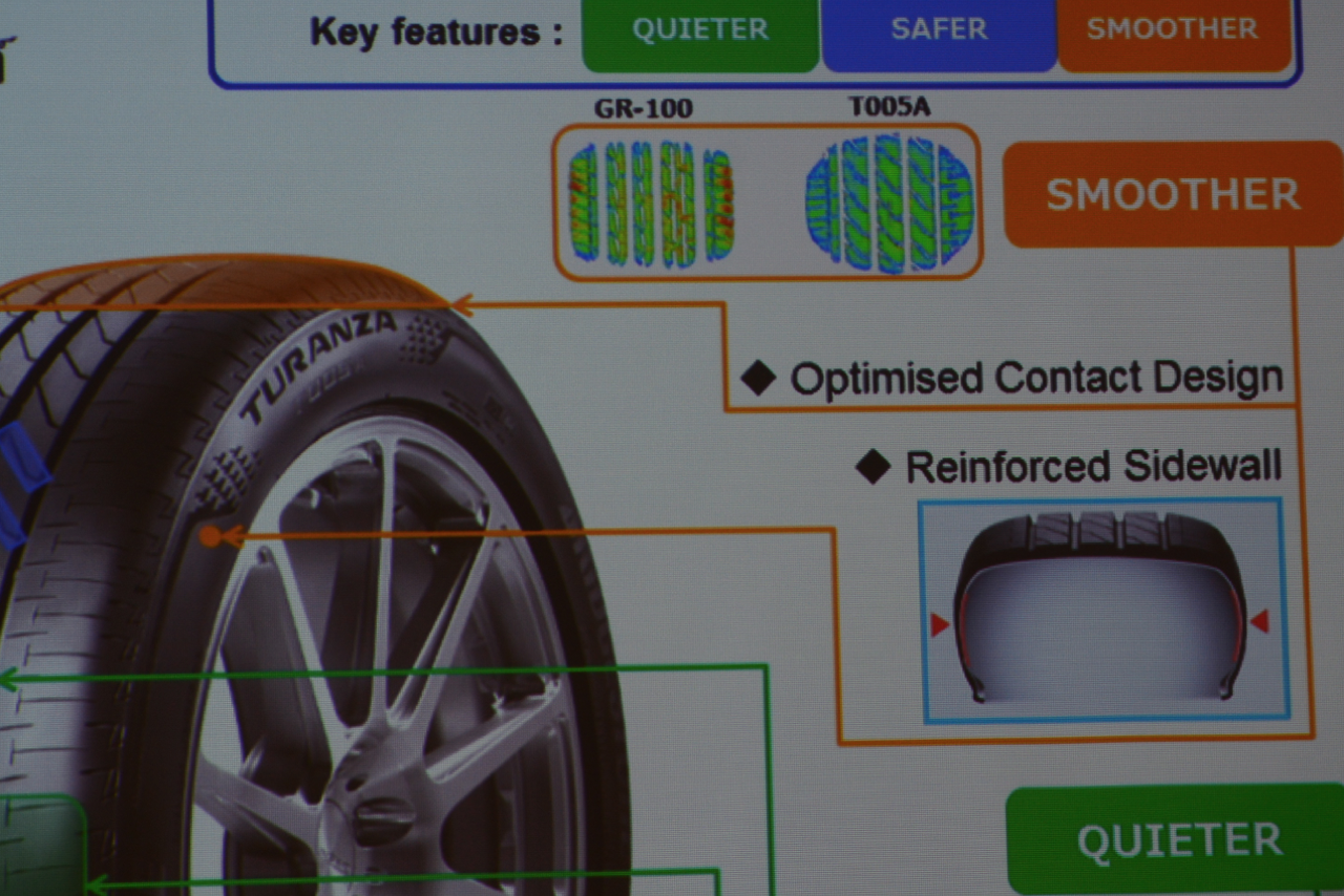 พัฒนาการที่ยาวนานของยาง ทำให้ผู้ใช้รถยนต์มีทางเลือกเพิ่มขึ้น ยางรุ่นใหม่ TURANZA T005A ออกแบบมาสำหรับรถเก๋งขนาดกลางไม่ว่าจะเป็นรถเยอรมันหรือญี่ปุ่น ก็สามารถใช้งานได้ดี ในส่วนของพัฒนาการนั้น TURANZA T005A มีค่ามาตรฐานใกล้เคียงหรือเหนือกว่ายางคู่แข่งตรงอายุการใช้งาน การปรับปรุงที่ดีขึ้นไม่ถึงกับทำให้ยางรุ่นนี้เปลี่ยนแปลงไปจากเดิมมากนักแต่การเปลี่ยนแปลงไปในทางที่ดีขึ้นกลับให้ประโยชน์ในด้านการใช้งาน เช่น เสียงที่เงียบลงจากร่องดอกยางแบบใหม่และอายุการใช้งานที่ยาวนานขึ้นกว่า 50,000 กิโลเมตร กลายเป็นการเปลี่ยนแปลงในจุดสำคัญที่ลูกค้าต้องการ