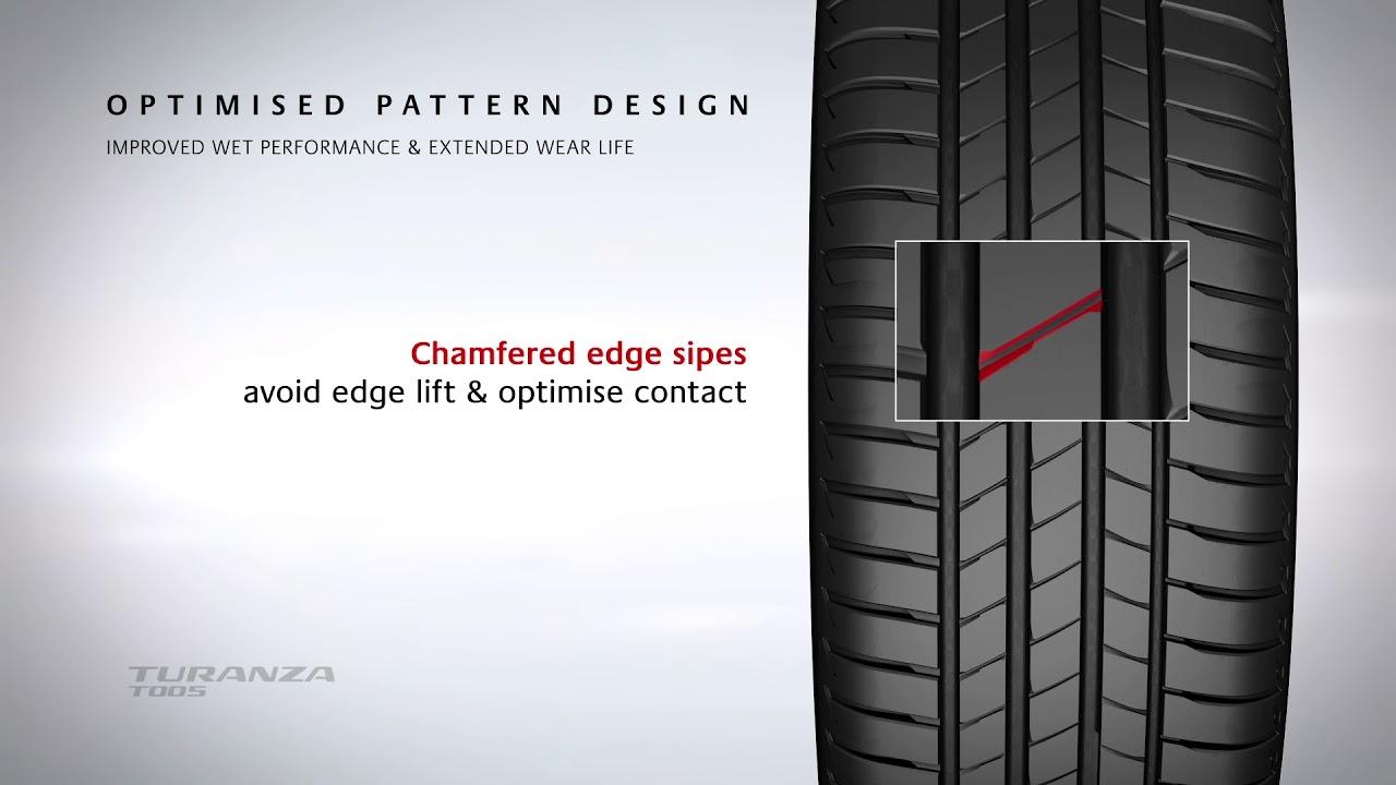 Bridgestone TURANZA T005A มีการปรับลายดอกยางใหม่หมด รวมถึงโครงสร้างของยางที่ทำให้แข็งแรงขึ้นจนมีอายุการใช้งานทะลุ 50,000 กิโลเมตร ส่วนประกอบทั้งขอบด้านนอกและด้านในของยางออกแบบให้วิ่งบนทางแห้งหรือเปียกชื้นได้ดีขึ้น การลดแรงต้านการหมุนช่วยทำให้ประหยัดขึ้น (นิดๆ) Bridgestone ระบุในวันทดสอบของสื่อมวลชนว่า TURANZA T005A รุ่นใหม่เป็นยางรถยนต์หรูไซส์กลางที่ดีที่สุดในปัจจุบัน (หากไม่นับประสิทธิภาพการรีดน้ำและการยึดเกาะของยางรถสปอร์ต) TURANZA T005A รับมือกับน้ำหนักที่มากขึ้นของซีดานแบบมิดไซล์ วิศวกรของ Bridgestone ยังแจ้งด้วยว่า ยางรุ่นใหม่ TURANZA T005A โดยภาพรวมมีมาตรฐานเหนือกว่ายางรุ่นเดิมอย่างชัดเจน ทั้งในแง่ของการเบรก การยึดเกาะบนผิวถนนในสภาวะต่างๆ รวมถึงประสิทธิภาพในการเลี้ยวซึ่งเป็นเรื่องสำคัญเนื่องจากคนที่ใช้รถยนต์ซีดานไซส์กลางโดยเฉพาะรถยุโรปนั้นค่อนข้างขับเร็วเอาเรื่อง