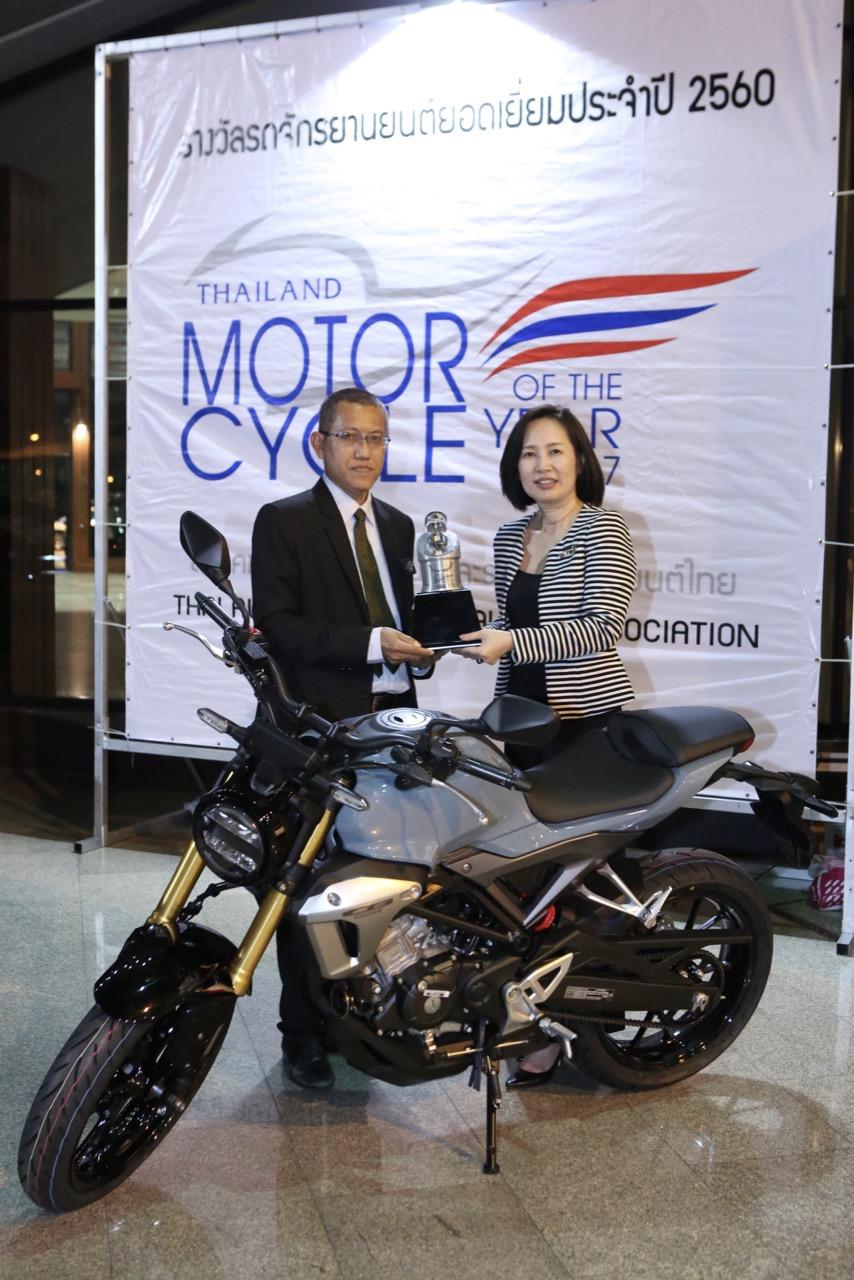 รางวัลรถจักรยานยนต์ยอดเยี่ยมประจำปี 2017 (Thailand Motorcycle of the year 2017) ที่มีเพียง 1 รางวัล ประกาศมอบเป็นครั้งแรก ปรากฏว่า “Honda CB150R” ประเดิมคว้ารางวัลเกียรติยศแห่งปีเป็นครั้งแรก ในประเภท “รถจักรยานยนต์ที่มีขนาดความจุกระบอกสูบต่ำกว่า 400 cc.” ทั้งนี้ คุณสาวิตรี แก้วพวงงาม ผู้จัดการทั่วไปฝ่ายสื่อสารการตลาด บริษัท เอ.พี.ฮอนด้า จำกัด ผู้จัดจำหน่ายรถจักรยานยนต์ฮอนด้าในประเทศไทย ได้รับมอบรางวัลจาก นายยุทธพงษ์ ภาษี นายกสมาคมผู้สื่อข่าวรถยนต์และรถจักรยานยนต์ไทย (TAJA) ณ สโมสรทหารบก วิภาวดีฯ เมื่อวันที่ 23 มีนาคม ที่ผ่านมา