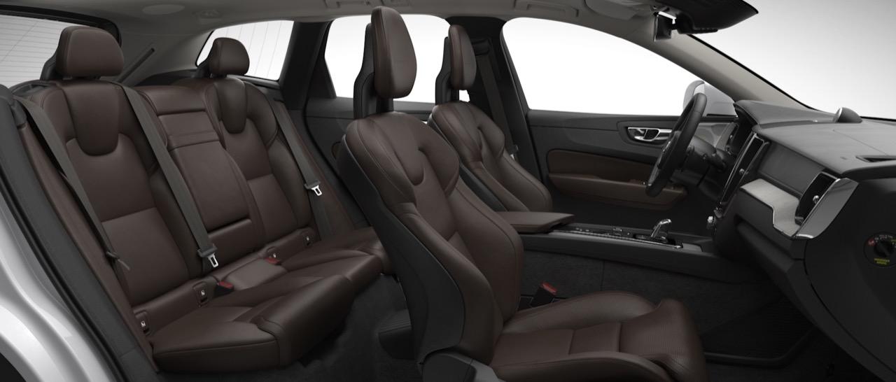 ห้องโดยสารของ XC60 รุ่นใหม่ ได้รับการอัพเกรดเพื่อเพิ่มความหรูหราด้วยการบุเบาะโดยสารด้วยหนังแท้ Nappa สีดำชาร์โคล หรือสีน้ำตาลมารูน ที่มีผิวสัมผัสนุ่มนวลพร้อมลายฉลุเพื่อการระบายอากาศ การตกแต่งแนวขอบของแดชบอร์ดด้วยเนื้อไม้แท้ Driftwood ภายนอกตัวรถตกแต่งด้วยวัสดุโครเมียมรอบคันพร้อมสีใหม่ Crystal White Premium Metallic รุ่น inscription ยังนำฟังก์ชั่นการปรับเบาะโดยสารคู่หน้าด้วยไฟฟ้าพร้อมหน่วยบันทึกความจำสองตำแหน่ง กล้องมองรอบคัน 360 องศา การแสดงข้อมูลการขับขี่บนกระจกบังลมหน้า ระบบเสียงระดับพรีเมียมจาก Bowers and Wilkins ล้ออัลลอยขอบ 19 นิ้ว กับยางขนาด 235/55 R19 เป็นล้อน้ำหนักเบารุ่น 10-Spoke Black Diamond Cut