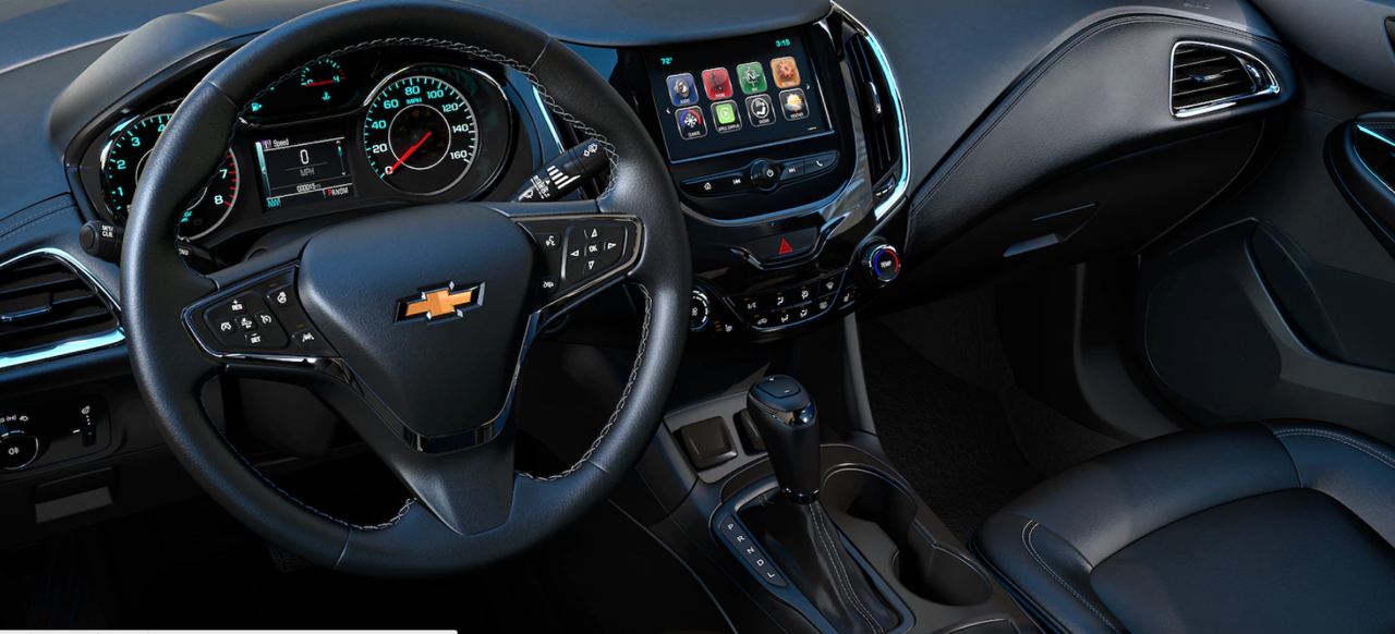 ภายในใส่ความสปอร์ตมากกว่ารุ่นที่แล้วอย่างชัดเจน Cruze 2018 มีแดชบอร์ดแบบใหม่ที่ลงตัว แดชบอร์ดคอนโซลแบ่งโซนผู้โดยสารและคนขับแยกออกจากกันอย่างสวยงาม พวงมาลัยสปอร์ต 3 ก้าน พร้อมสวิตช์ปรับโหมด มาตรวัดเรืองแสงสีขาว ช่องแอร์ทรงเหลี่ยมที่เข้ากับแดชบอร์ด จอภาพมอนิเตอร์ขนาด 7 นิ้ว รองรับการเชื่อมต่อกับโลกภายนอก พร้อมระบบเสียง Bose® premium 9-speaker sound system เบาะหนังแท้ 4 ตำแหน่ง ซุ้มเกียร์ค้อนข้างเรียบง่าย พร้อมที่วางแก้วน้ำ รุ่นแฮตช์แบ็ค 5 ประตู เบาะหลังสามารถปรับพับได้หลากหลายเพื่อเพิ่มพื้นที่เก็บสัมภาระ