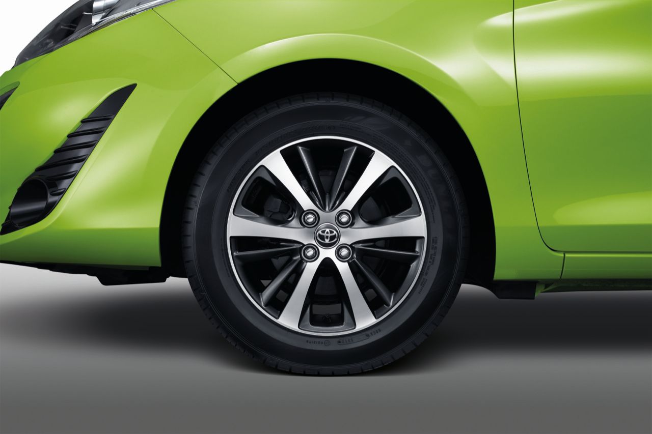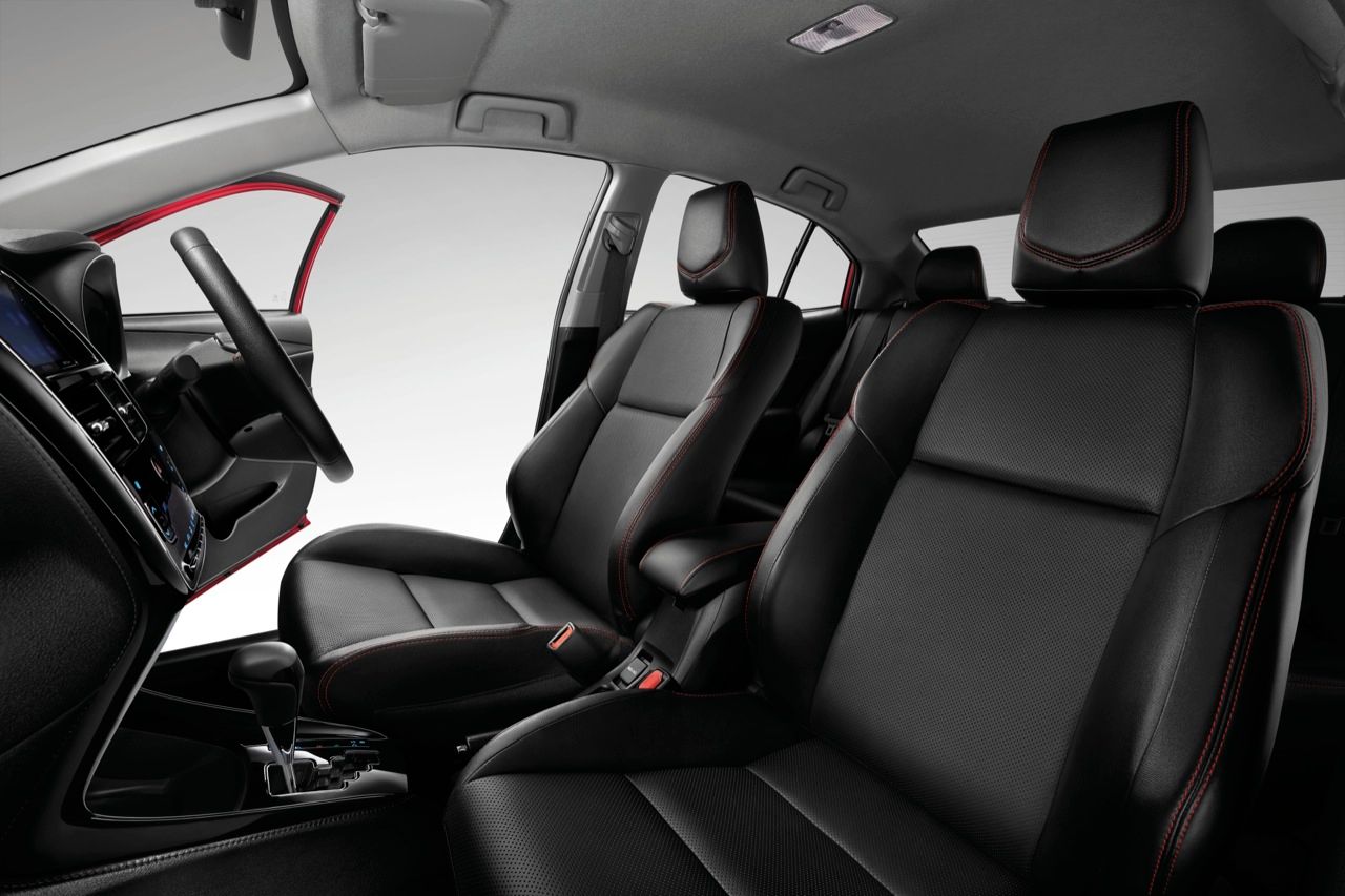Toyota Yaris ATIV S+ รูปลักษณ์ปรับให้ดูสปอร์ตด้วยกระจังหน้าสีดำเงา ด้านล่างตกแต่งด้วยแถบสีแดง กระจกมองข้างสีดำเงาพร้อมไฟเลี้ยวตกแต่งด้วยแถบสีแดง ไฟตัดหมอกหน้า พร้อมวัสดุตกแต่งไฟตัดหมอกสีดำเงา ล้ออัลลอยขนาด 15 นิ้ว ปัดเงาสีทูโทน