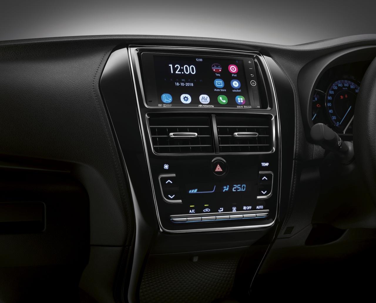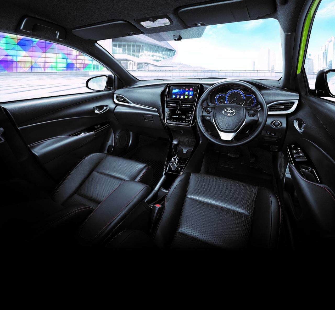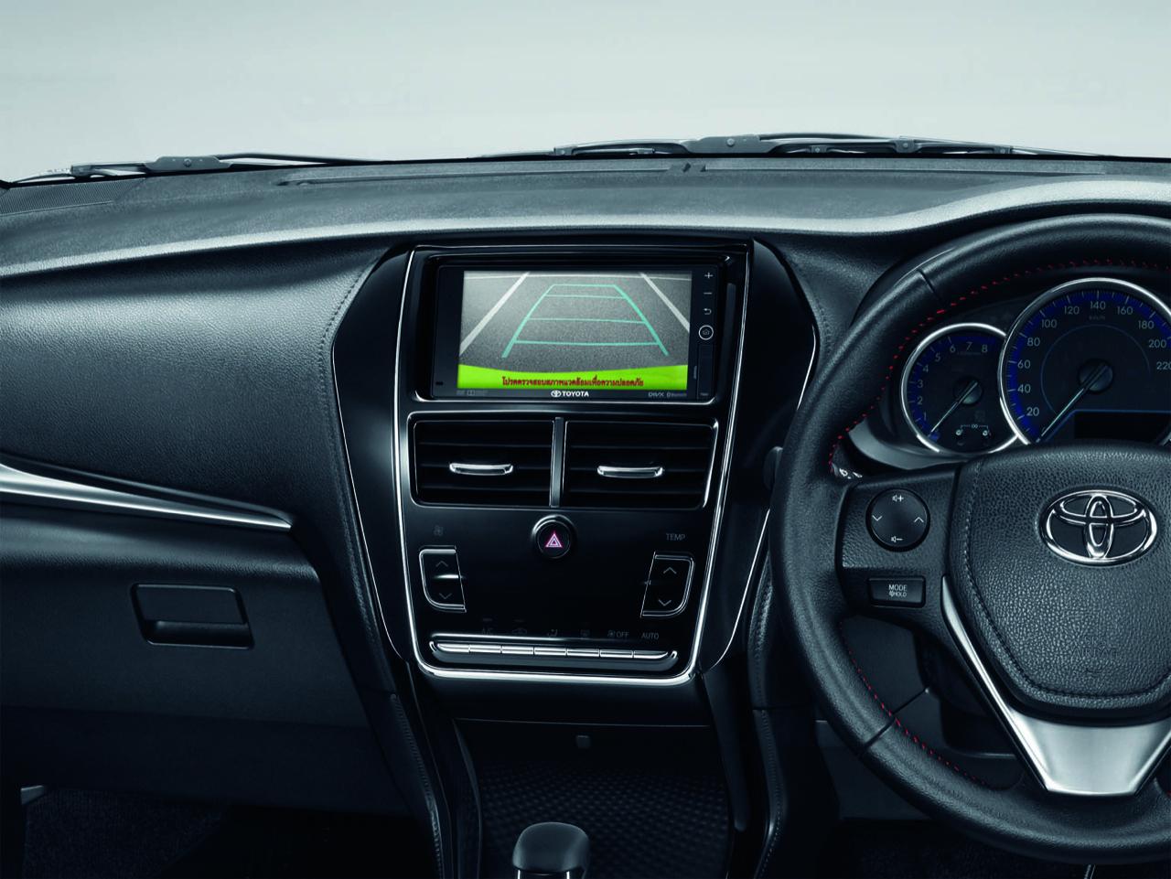 Toyota Yaris G+ ติดตั้งอุปกรณ์อำนวยความสะดวกครบ เช่น เครื่องเสียง พร้อม DVD หน้าจอสัมผัส 7 นิ้ว พร้อมเชื่อมต่อ Bluetooth, USB, HDMI และ Micro SD Card ลำโพง 6 ตำแหน่ง กล้องมองหลัง