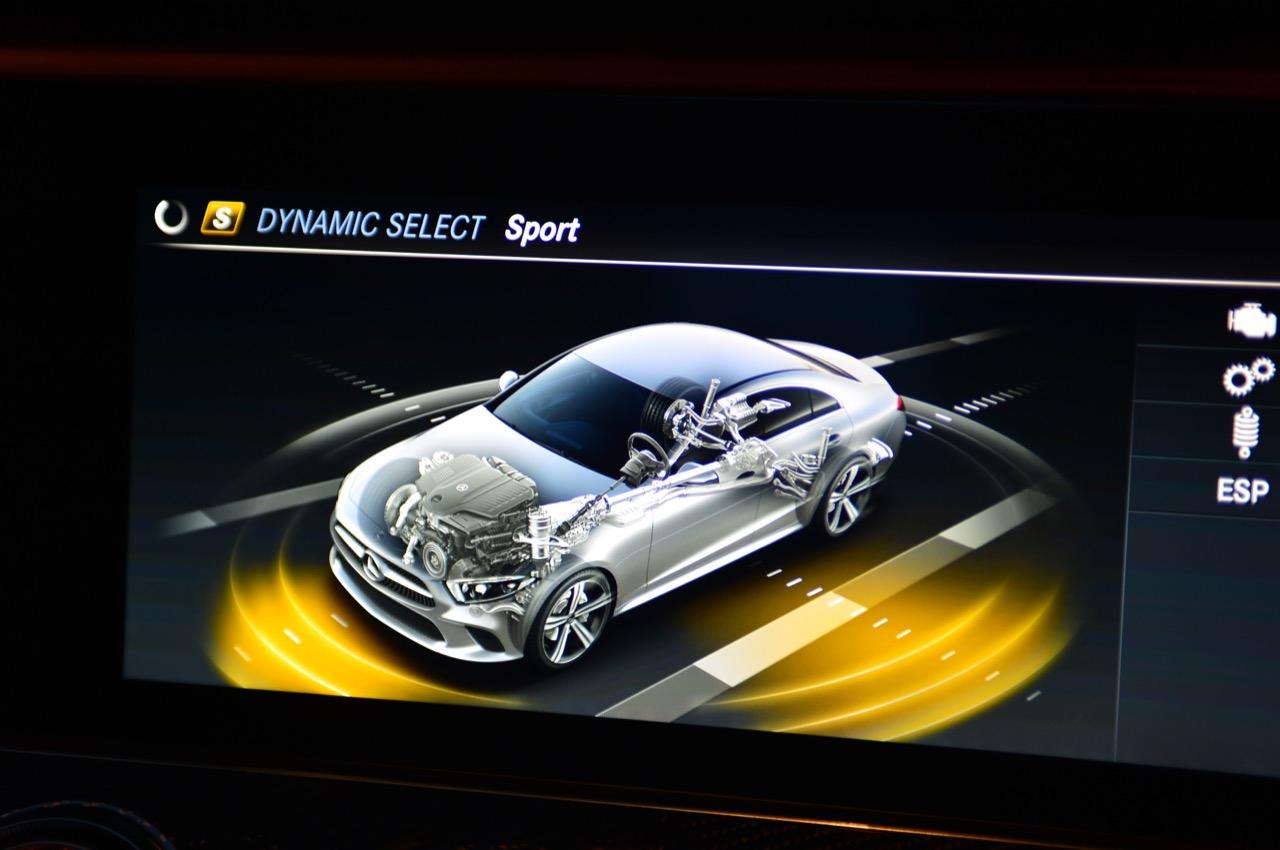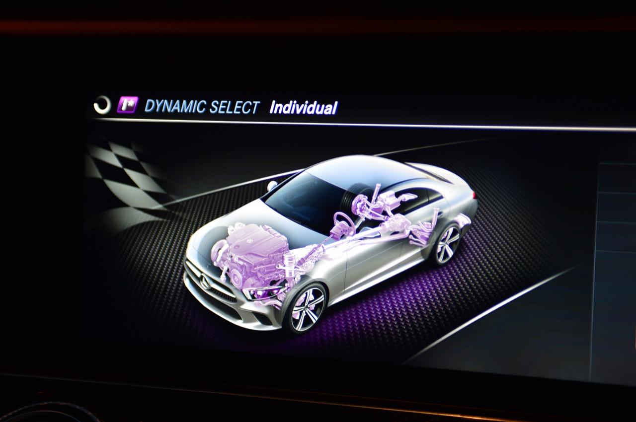 ติดตั้งไฟประดับที่ช่องลมของเครื่องปรับอากาศ เพื่อเสริมรูปลักษณ์ของช่องลมที่ดูคล้ายเครื่องยนต์ของเครื่องบินเจ็ต เสริมลูกเล่นด้วยการเปลี่ยนสีเมื่อมีการปรับอุณหภูมิ รวมถึงการออกแบบแผงหน้าปัดสำหรับผู้ขับขี่แบบดิจิทัล ที่ผู้ขับขี่สามารถเลือกรูปแบบการแสดงผลของแผงหน้าปัดได้ 3 แบบ เพื่อให้เหมาะกับความรู้สึกขณะขับขี่ หรือให้เข้ากับการตกแต่งภายในห้องโดยสาร ออกแบบเบาะที่นั่งสำหรับรถยนต์ตระกูล CLS ให้มีการจัดวางเบาะที่นั่งเป็นแบบ 5 ที่นั่ง โดยมีวัสดุหุ้มเบาะเป็นหนัง nappa และฝีเข็มสำหรับทั้งเบาะที่นั่งคู่หน้าและเบาะที่นั่งตอนหลังที่อยู่ในตำแหน่งตรงกับเบาะที่นั่งตอนหน้าถูกจัดวางให้เหมือนกันเพื่อสร้างความรู้สึกให้คล้ายกับรถสปอร์ต 1 ที่นั่ง เบาะที่นั่งตอนหลังยังสามารถพับลงแบบ 40/20/40 เบาะที่นั่งคู่หน้าสามารถปรับระดับด้วยระบบไฟฟ้า พร้อมหน่วยบันทึกความจำ, พวงมาลัยเพาเวอร์แบบมัลติฟังก์ชั่นแบบสปอร์ต 3 ก้านท้ายตัดที่ปรับน้ำหนักตามความเร็วรถด้วยระบบไฟฟ้า หุ้มหนัง nappa พร้อมปุ่มควบคุมแบบ Touch Control, ระบบ AUDIO 20 GPS และหน้าจอแสดงผลข้อมูลแบบ Digital widescreen cockpit ขนาด 12.3 นิ้ว, ระบบควบคุมและสั่งงานด้วย touchpad, กาบบันไดเรืองแสงพร้อมสัญลักษณ์ Mercedes-Benz, ชุดคันเร่งและแป้นเบรกแบบสปอร์ต ไฟเรืองแสงล้อมรอบห้องโดยสารปรับตั้งได้ 64 สี (Premium ambient lighting)