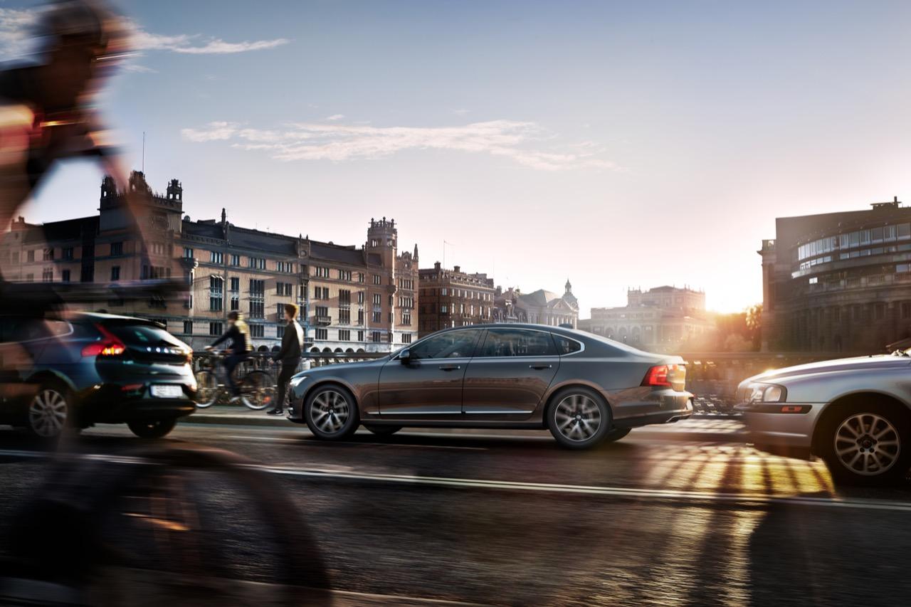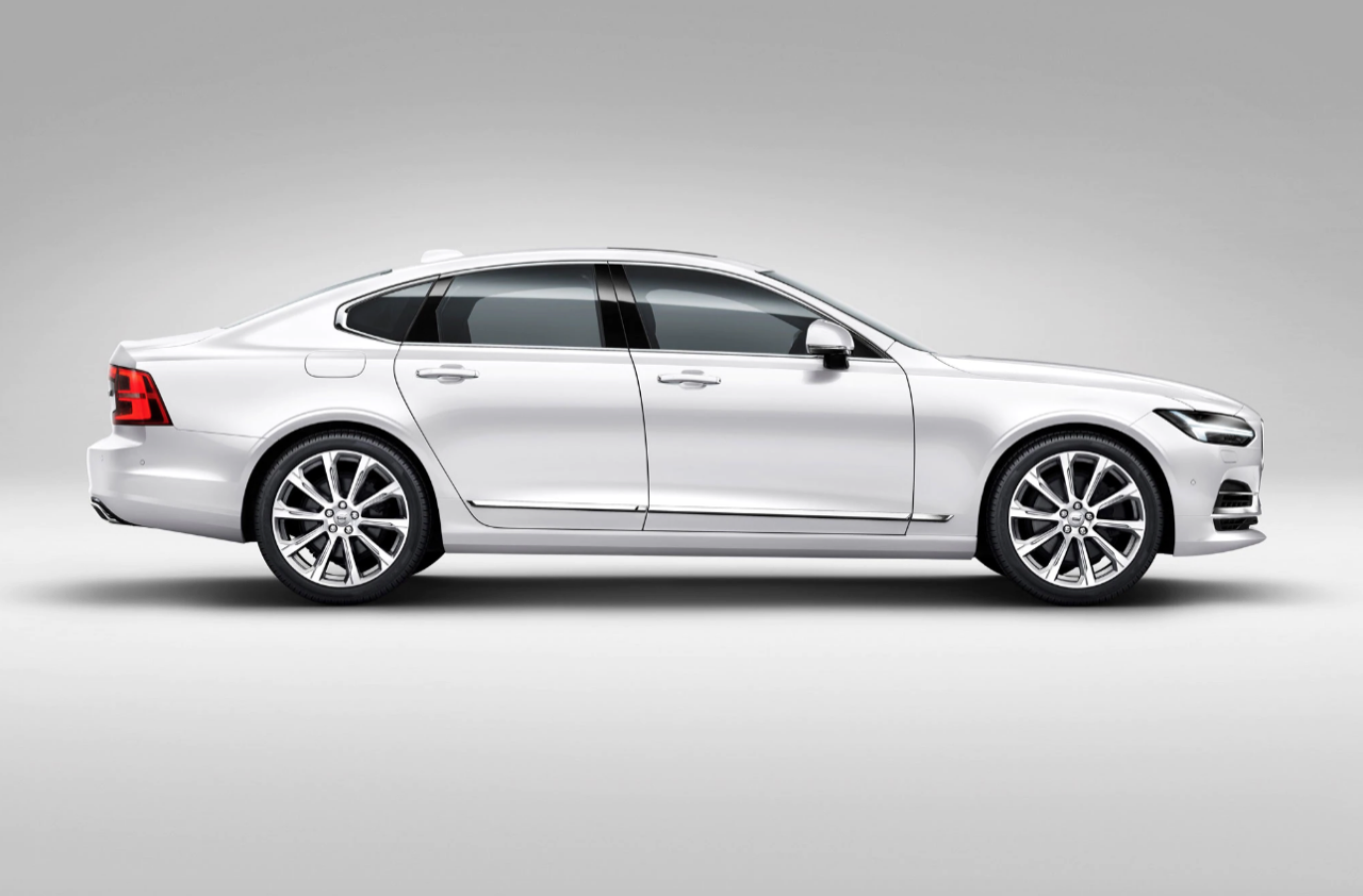 Volvo S90 มีขนาดความยาวตัวถังถึง 4,963 มิลลิเมตร ยาวเกือบจะเท่ากับ BMW Series-7 รุ่นใหม่ ขนาดความกว้าง 2,019 มิลลิเมตร สัดส่วนความสูงอยู่ที่ 1,443 มิลลิเมตร ค่อนข้างแบนและเตี้ย เนื่องจากต้องการปรับค่าสัมประสิทธิแรงเสียดทานอากาศให้ดีกว่าเดิม ตัวถังที่มีความลู่ลมยังช่วยประหยัดเชื้อเพลิง ระยะห่างฐานล้อวัดจากดุมหน้าไปถึงดุมหลัง 2,941 มิลลิเมตร ระยะห่างล้อหน้า 1,628 มิลลิเมตร ส่วนระยะห่างล้อหลังอยู่ที่ 1,629 มิลลิเมตร เสา A หรือเสาหน้าถูกรีดให้บางลงมาก รวมถึงเสาท้ายที่บางเฉียบแสดงให้เห็นถึงความตั้งใจในการออกแบบ ทรงด้านข้างของตัวรถที่น่ามองเกิดจากแนวหลังคาที่ประสานองศาของความลาดเอียงไปยังส่วนท้าย กระจกบังลมบานหลังอยู่ในระนาบที่สมบูรณ์แบบ ด้านข้างบริเวณชายล่างติดตั้งคิ้วโครเมี่ยมสีเงิน เส้นคมจากขอบของแก้มข้างไล่ไปจนถึงขอบของไฟท้าย ความสง่างามที่ผสมกลมกลืนทั่วทั้งคันของ Volvo S90 เกิดจากการออกแบบที่ยอดเยี่ยมในสไตล์สแกนดิเนเวียนอันเข้มข้น เป็นยนตรกรรมขั้นหัวกะทิหรือเรือธงของ Volvo ที่จะเข้ามาสานต่อความสำเร็จของ XC90
