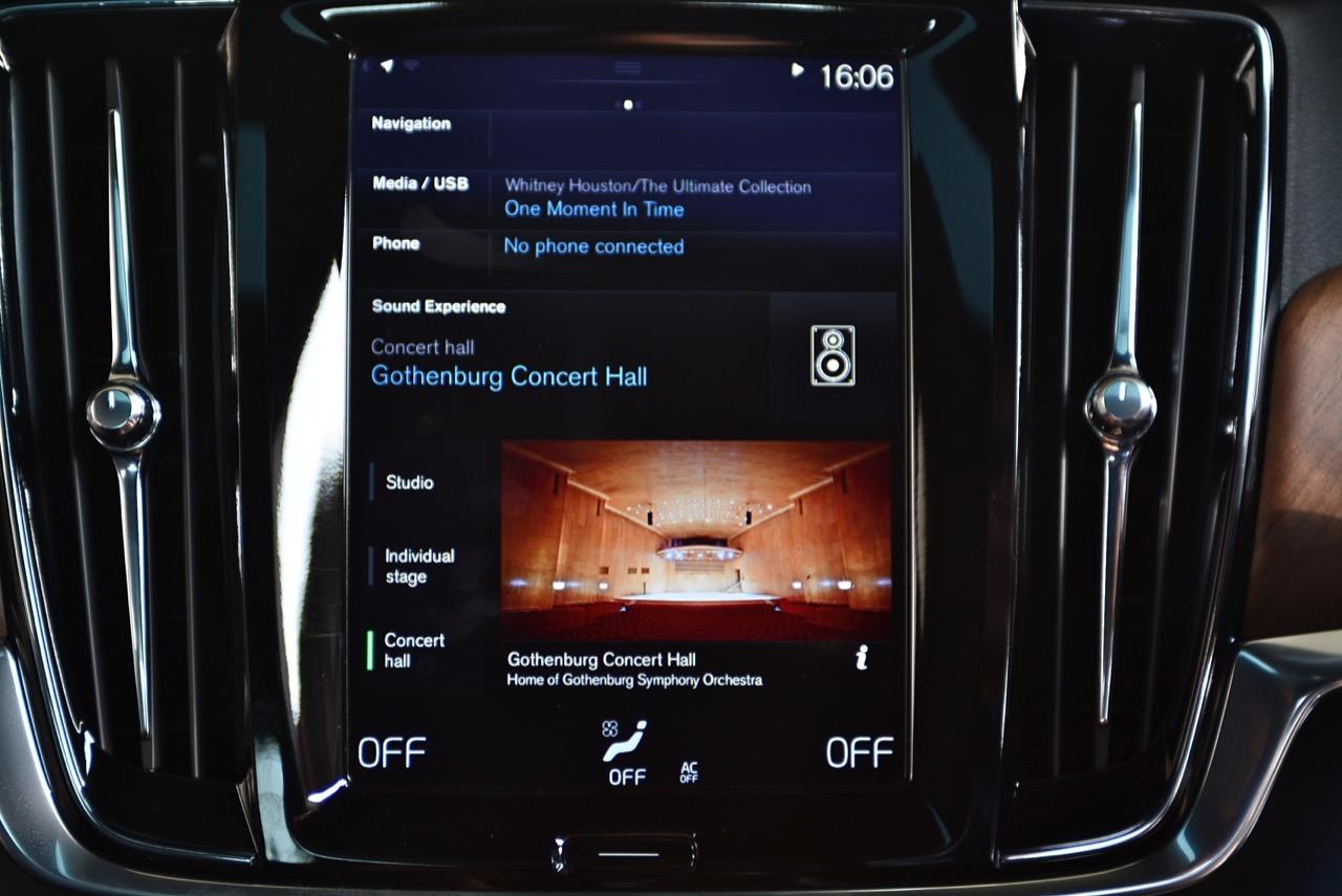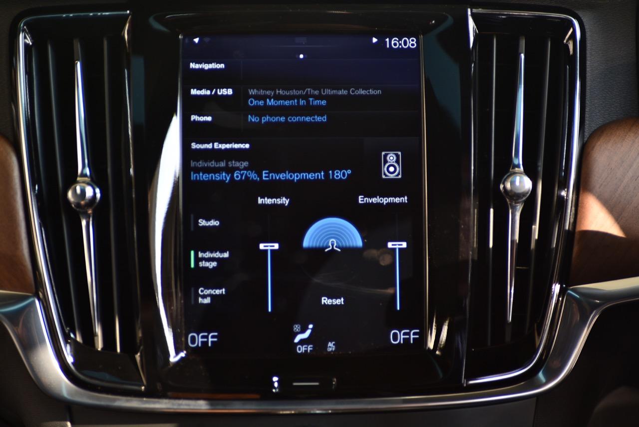 Volvo S90 ติดตั้งระบบเครื่องเสียงติดรถยนต์ของ Bowers & Wilkins ให้คุณภาพเสียงเพลงระดับสูงจากการเล่นผ่าน iPOD / USB และอุปกรณ์ต่างๆ เป็นชุดเครื่องเสียงติดรถยนต์เกรด Premium Sound พลังขับ 1,400 วัตต์ Class-D ภาคขยาย 12 แชนแนล พร้อมลำโพง 19 ตัวรอบห้องโดยสาร ซัพวูฟเฟอร์ระบายความร้อนในตัว (Unique Air-Ventilated Subwoofer) ระบบเสียงสเตอริโอรอบทิศทางเป็นส่วนหนึ่งของเทคโนโลยีวิศวกรรมเสียง Room Transformation ผลวิจัยพัฒนาระหว่าง Volvo กับบริษัทพัฒนาซอฟต์แวร์ระบบเสียง Direct Research ของสวีเดน ผลที่ได้คือ คุณภาพของเสียงที่ขับผ่านลำโพงทั้ง 19 ตำแหน่งรอบห้องโดยสาร คล้ายฟังเพลงในห้องแสดงคอนเสิร์ต โหมดการปรับตั้งเสียง เช่น Studio, Individual Stage, และ Gothenburg Concert Hall