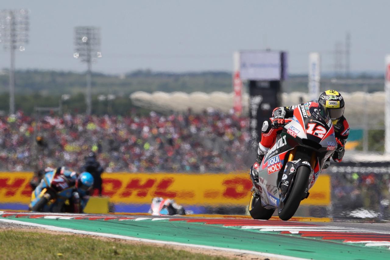 เครื่องยนต์ Triumph ที่ใช้ในการแข่งขัน Moto2 พา Thomas Lüthi นักบิดจากสวิตเซอร์แลนด์ทะยานผ่านเส้นชัยในสนามแข่ง Moto2 กลายเป็นผู้ชนะคนที่สองของการแข่งรถมอเตอร์ไซค์รายการชิงแชมป์โลกรุ่น Moto2 ที่จัดขึ้นใน Circuit of the Americas เมื่อช่วงสุดสัปดาห์ที่ผ่านมา หลังจาก Marcel Schrötter เพื่อนร่วมทีม Dynavolt Intact GP ครองตำแหน่งในการแข่งขัน Moto2 ที่ยากลำบากและท้าทาย นอกจากนี้ยังเป็นครั้งแรกของ Jorge Navarro ที่ได้ขึ้นแท่นรับรางวัลในการแข่งขัน Moto2 อีกด้วย