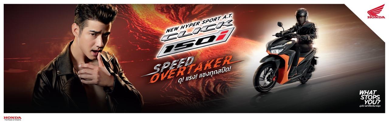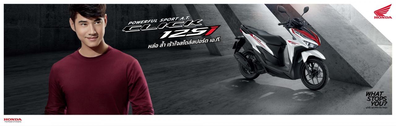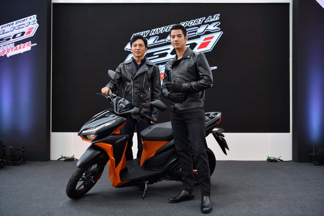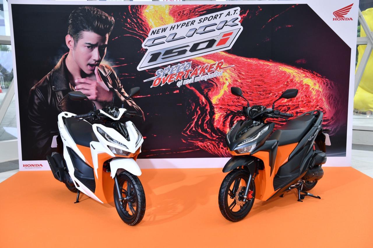 AP Honda เปิดตัว New Honda Click Series สปอร์ต เอ.ที.รุ่นยอดนิยมอันดับ 1 นำโดยรุ่นเรือธง New Click 150i ที่กวาดยอดขายเป็นอันดับ 1 ในเซกเมนต์รถจักรยานยนต์ สปอร์ต เอ.ที. อย่างต่อเนื่อง รุ่นใหม่ New Click150i มาภายใต้คอนเซปต์ ดุ แรง แซงทุกสปีด ดีไซน์สายพันธุ์ดุด้วยสีดำตัดสีส้มแสบจี๊ด เครื่องยนต์ eSP 150 ซีซี ระบายความร้อนด้วยน้ำ และ Honda Smart Technology สำหรับรุ่นยอดนิยม New Click125i มาพร้อมคอนเซปต์ หล่อ ล้ำ เร้าใจ สไตล์สปอร์ต เอ.ที.” ดีไซน์สีใหม่ พร้อมดึงนักแสดงหนุ่มสุดฮอต มาริโอ้ เมาเร่อ เป็นพรีเซ็นเตอร์ ตอกย้ำภาพลักษณ์สไตล์สปอร์ตของรถเอ.ที.ที่ฮอตที่สุดในวงการรถจักรยานยนต์